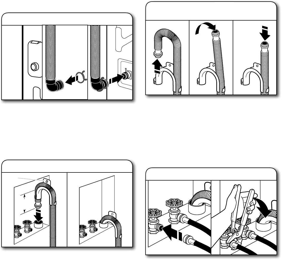 La laveuse doit être raccordée aux robinets à l’aide de tuyaux