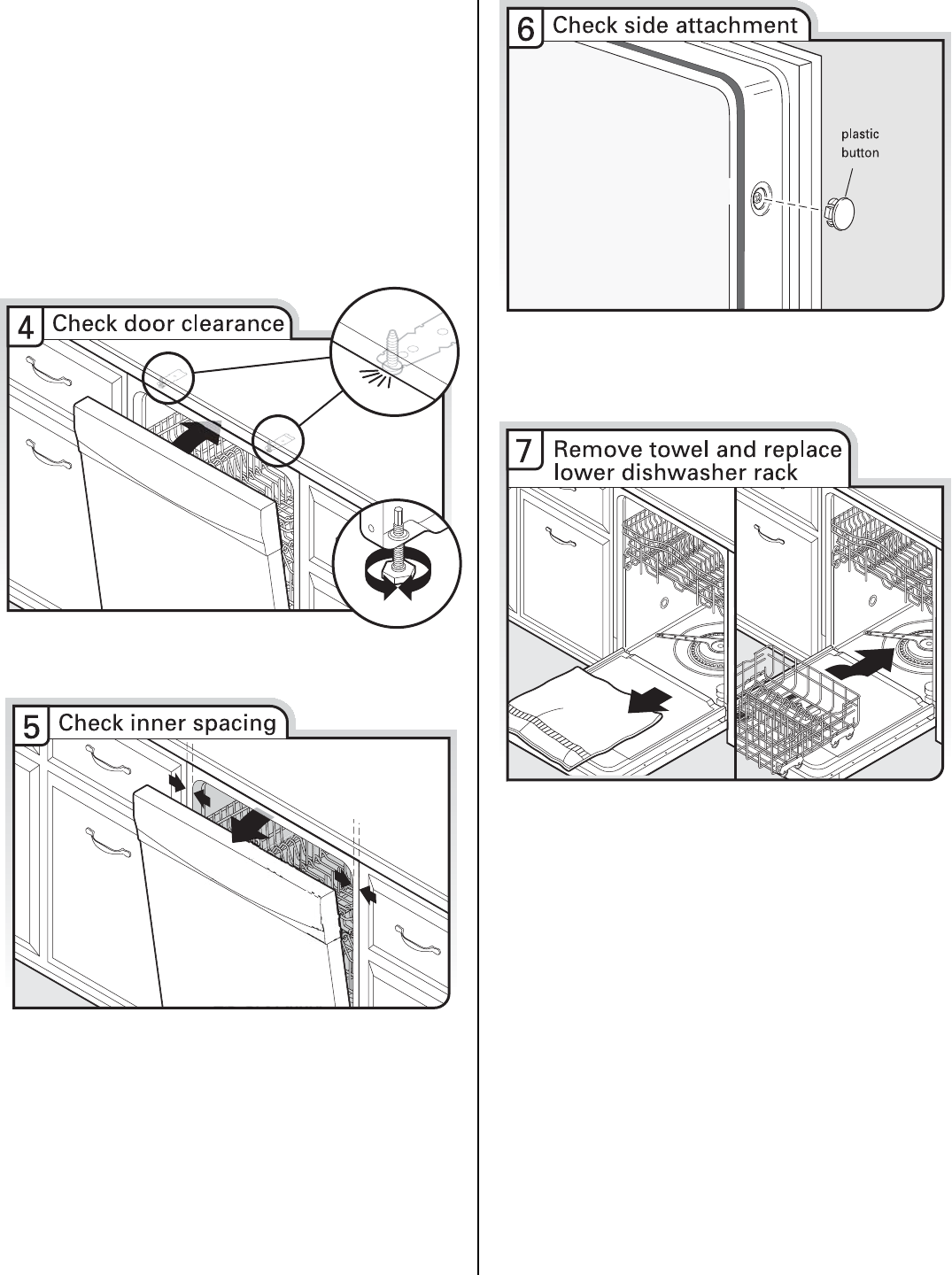 Remove towel from dishwasher. Reinstall the lower dish rack.