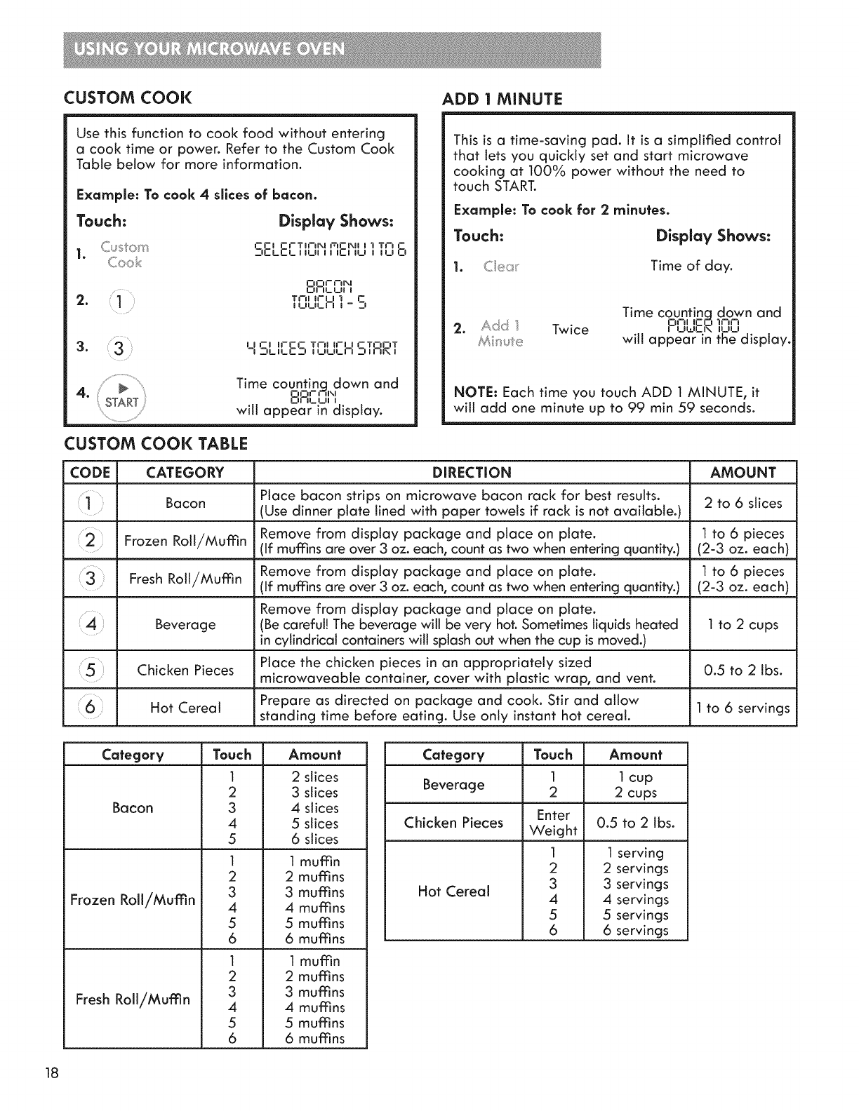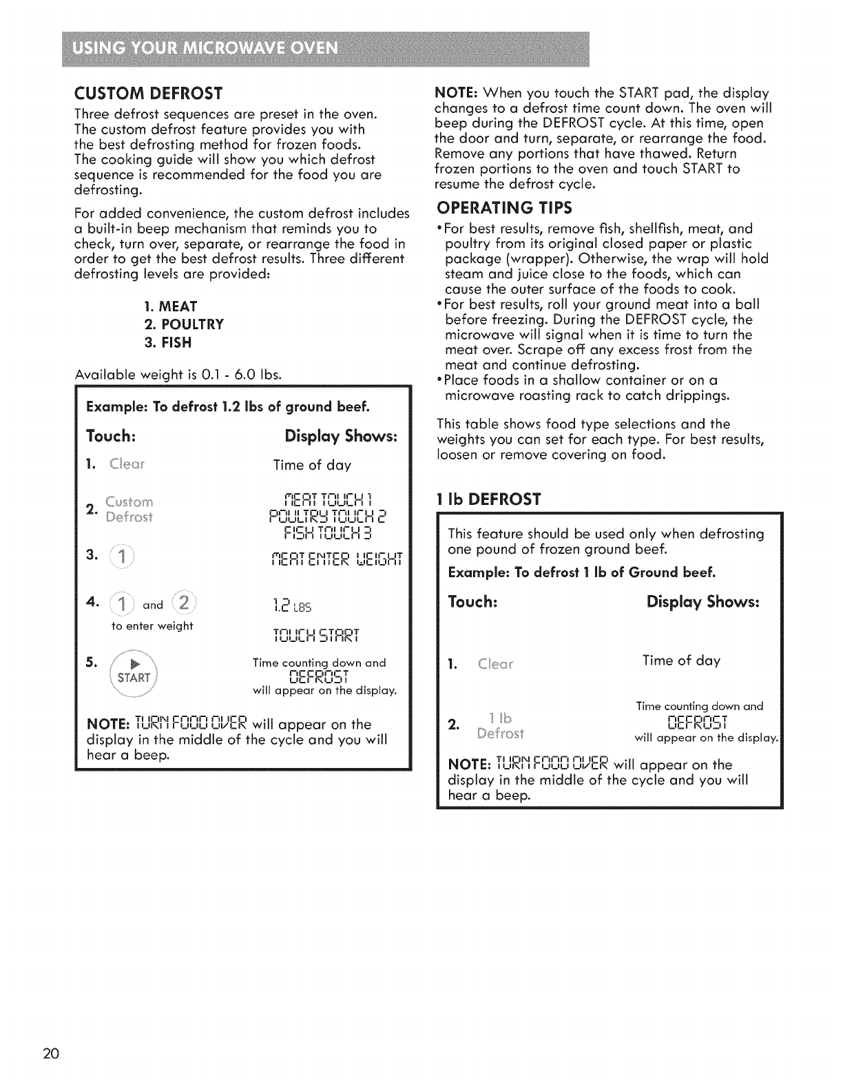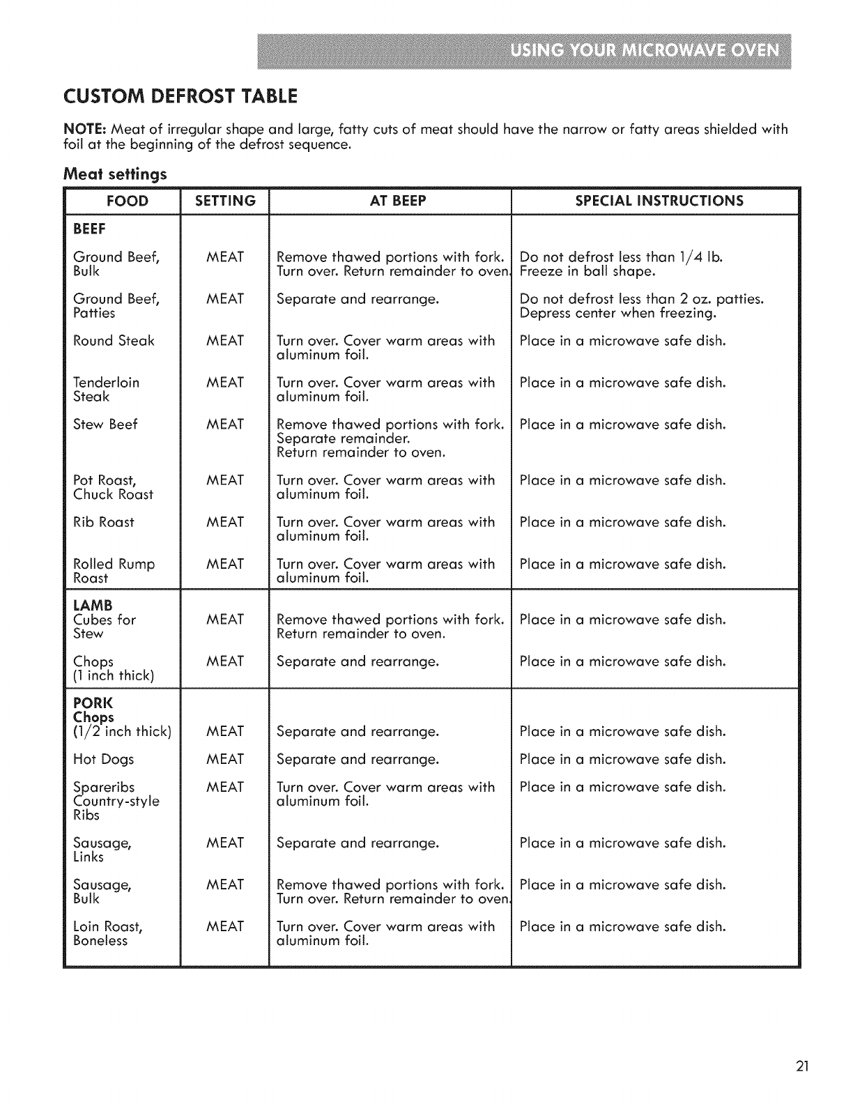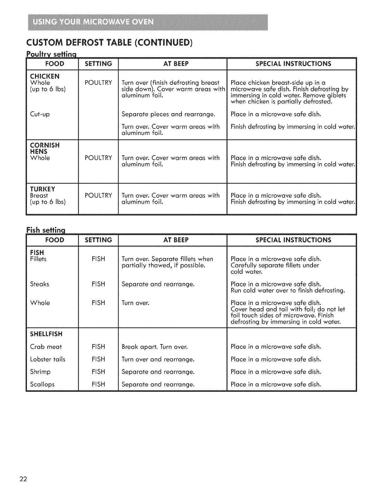 Custom Defrost Table ............................................... 21-22