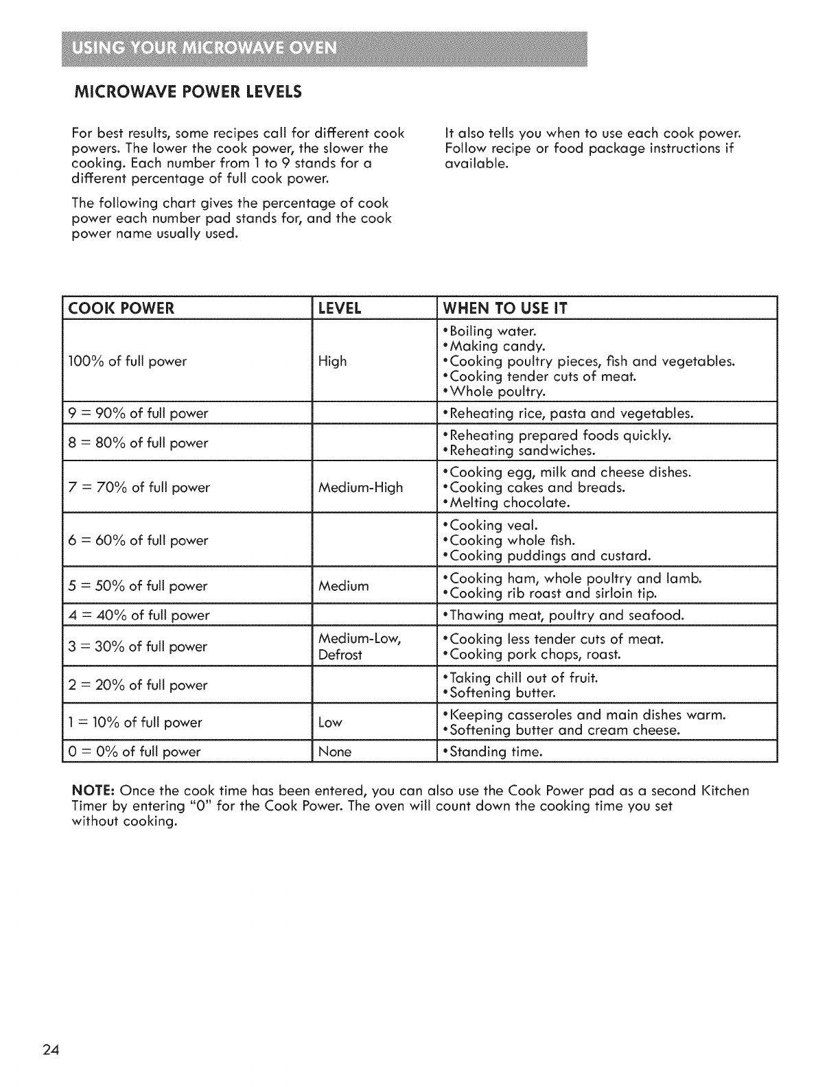 Microwave Power Levels ............................................... 24