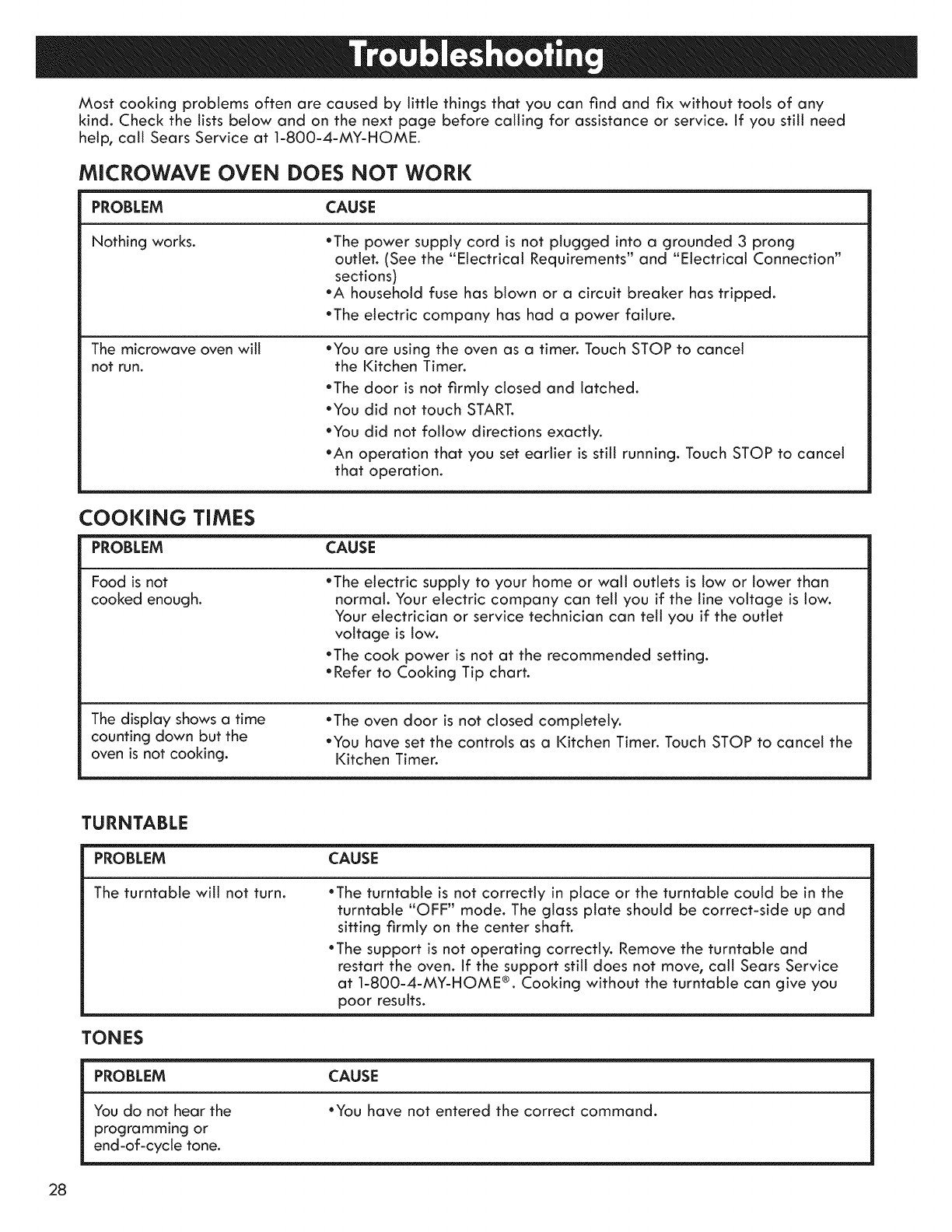 at 1-800-4-MY-HOME ®. Cooking without the turntable can give you