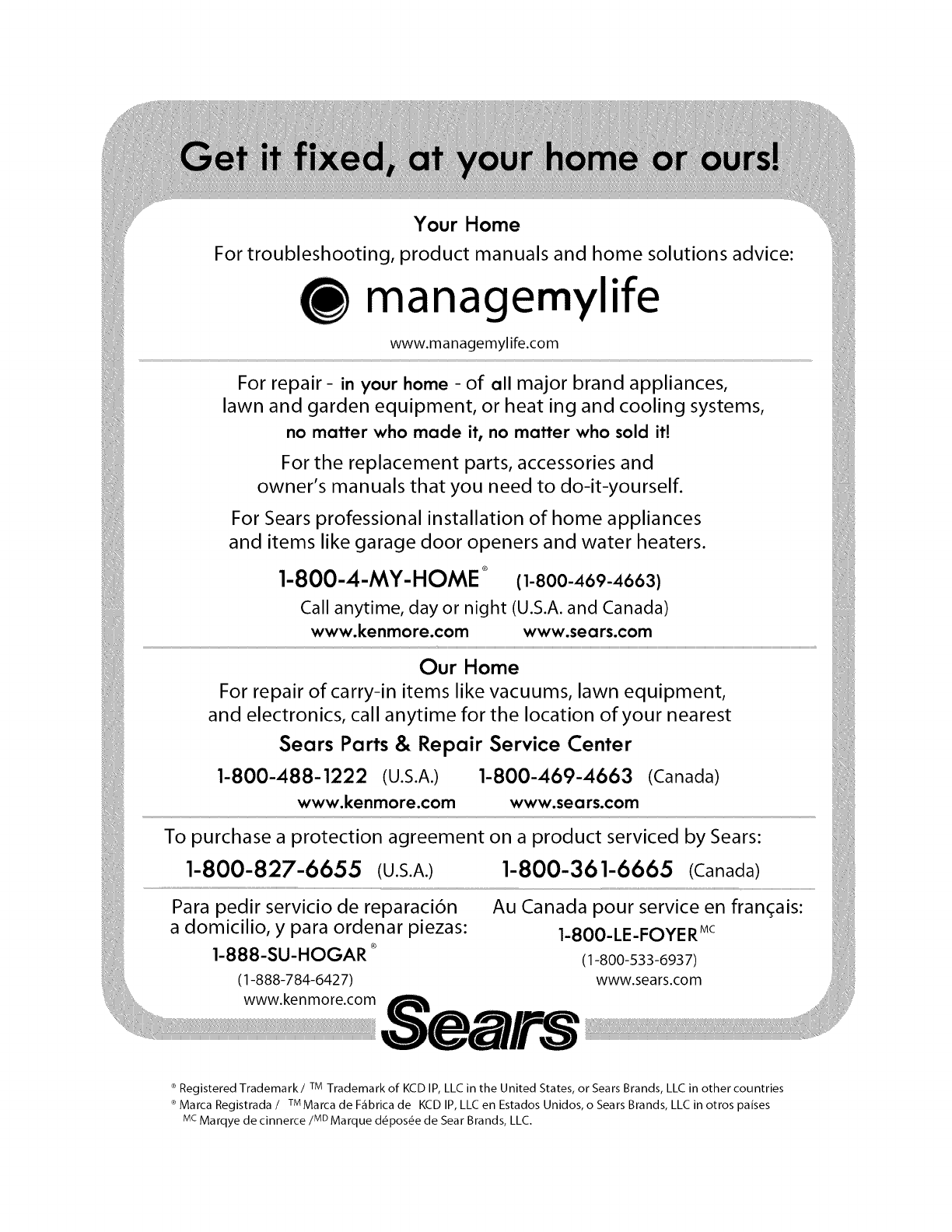 (I -888-784-6427) www.sears.com