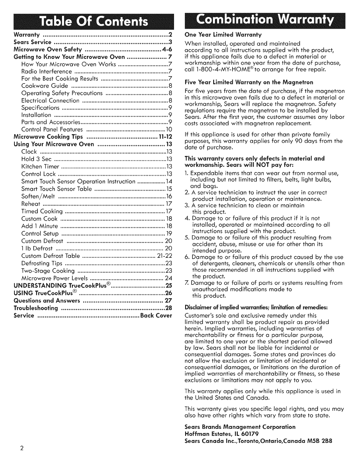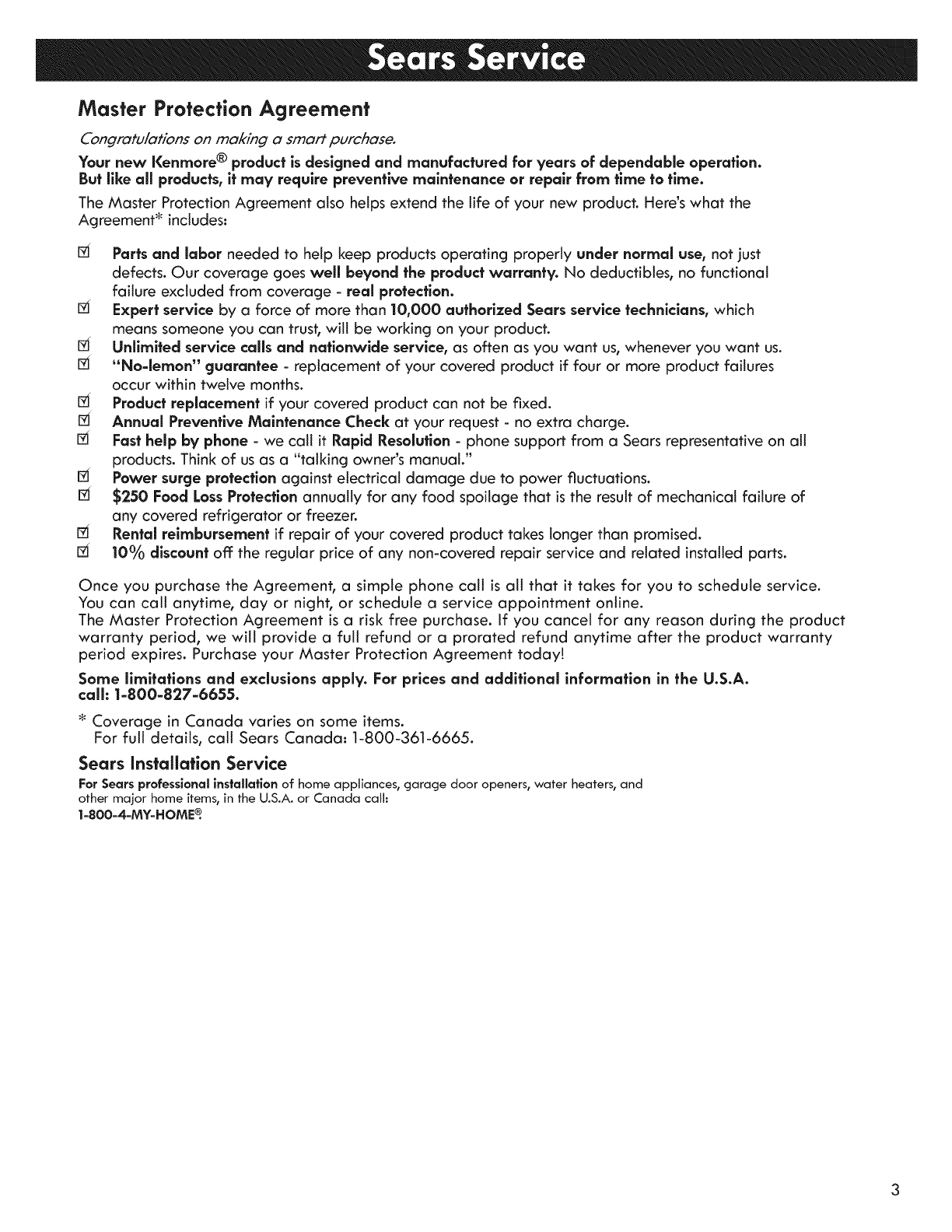 Sears Service ............................................................... 3