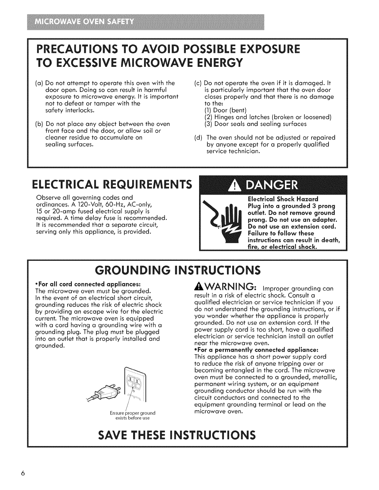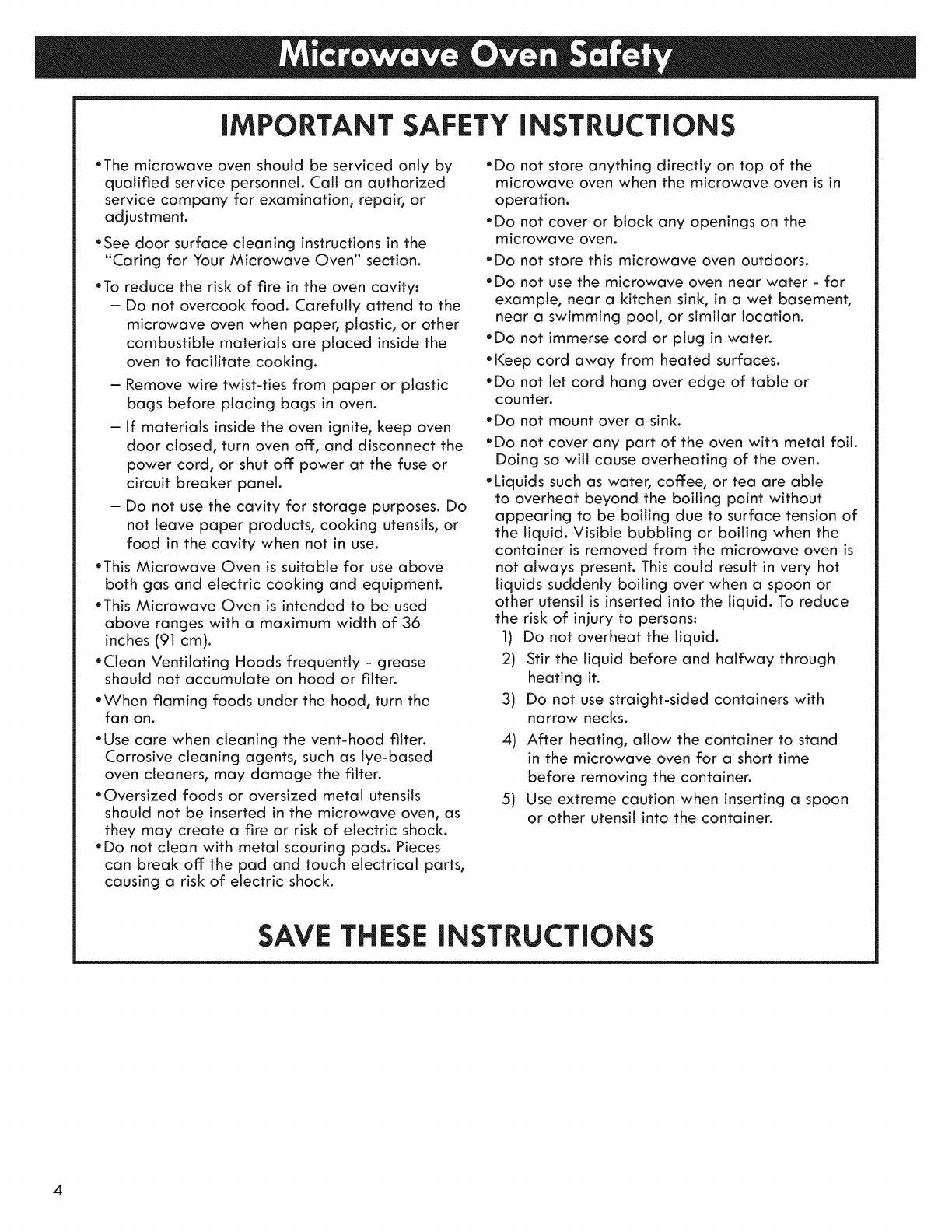 Microwave Oven Safety .......................................... 4=6