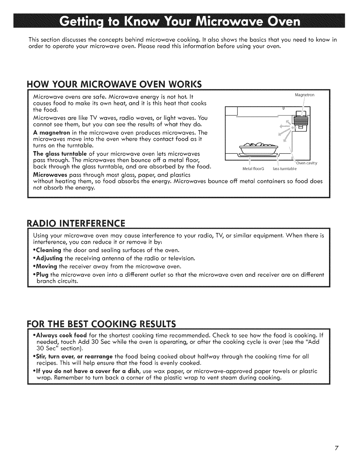How Your Microwave Oven Works ................................ 7