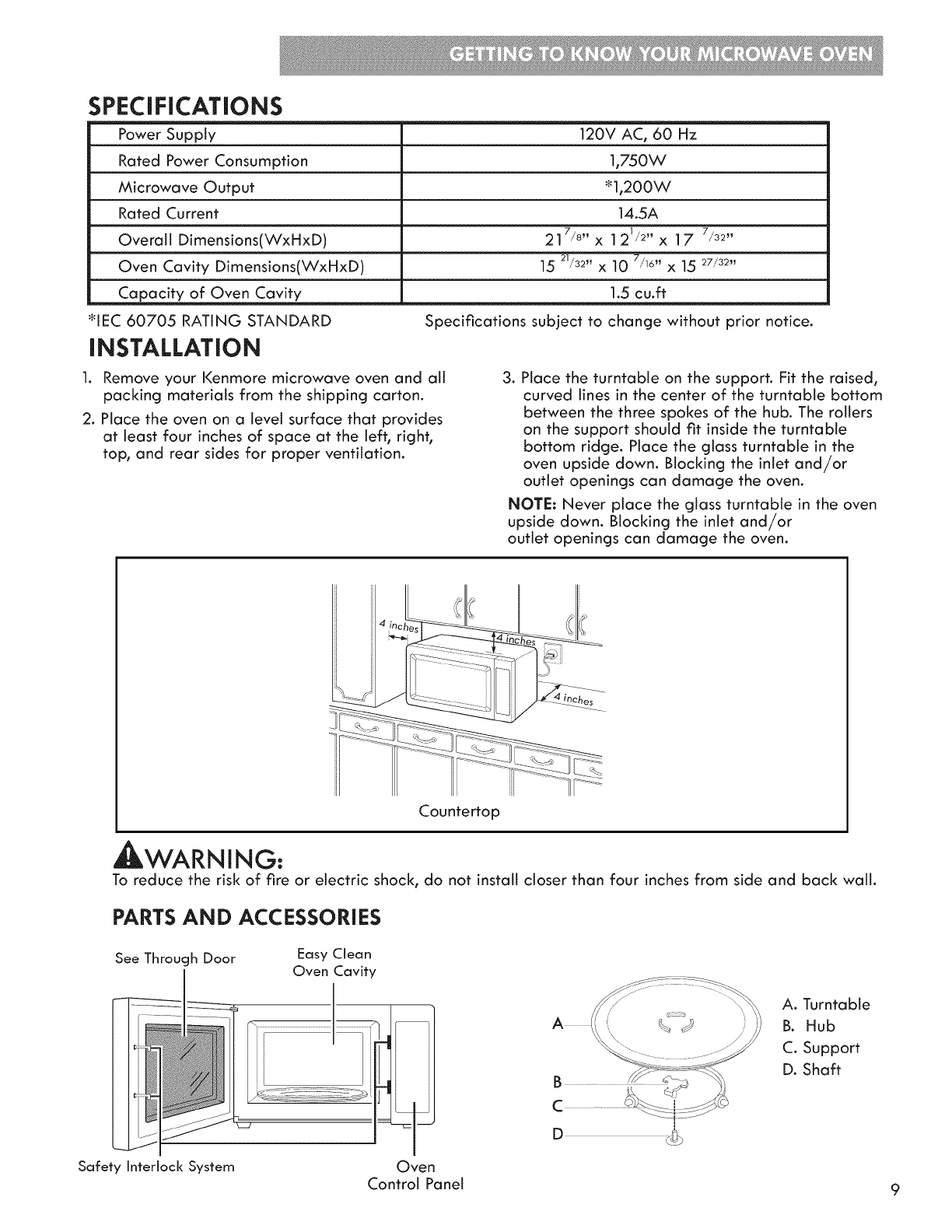 Getting to Know Your Microwave Oven ...................... 7