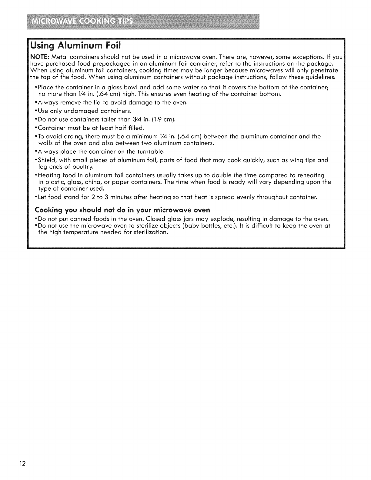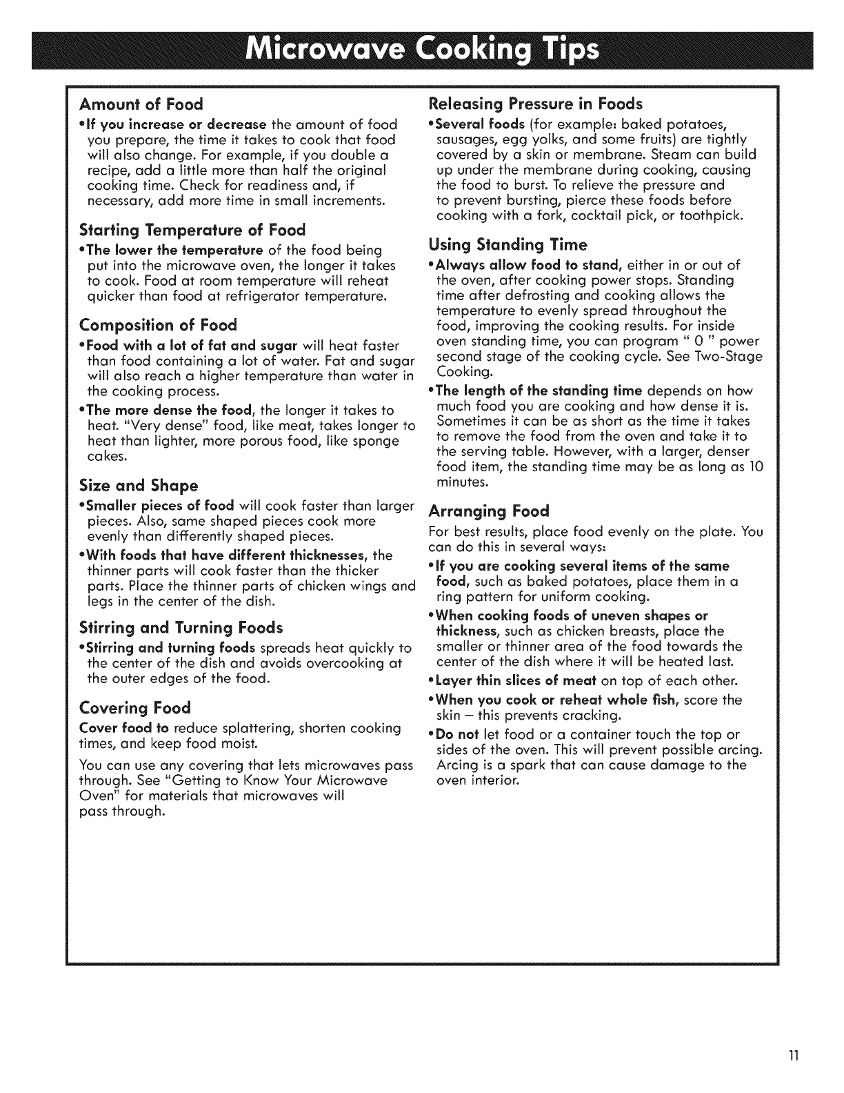 Microwave Cooking Tips ....................................... 11=12
