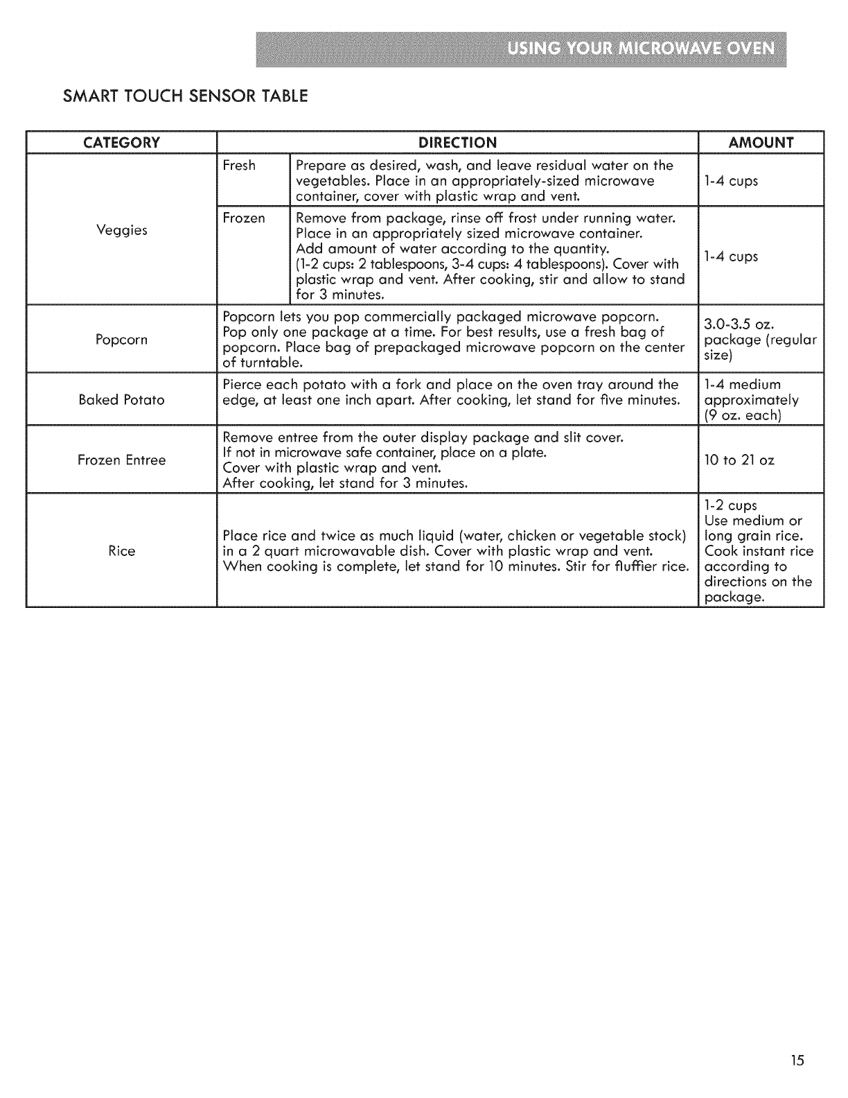 • Refer to Cooking Tip chart.