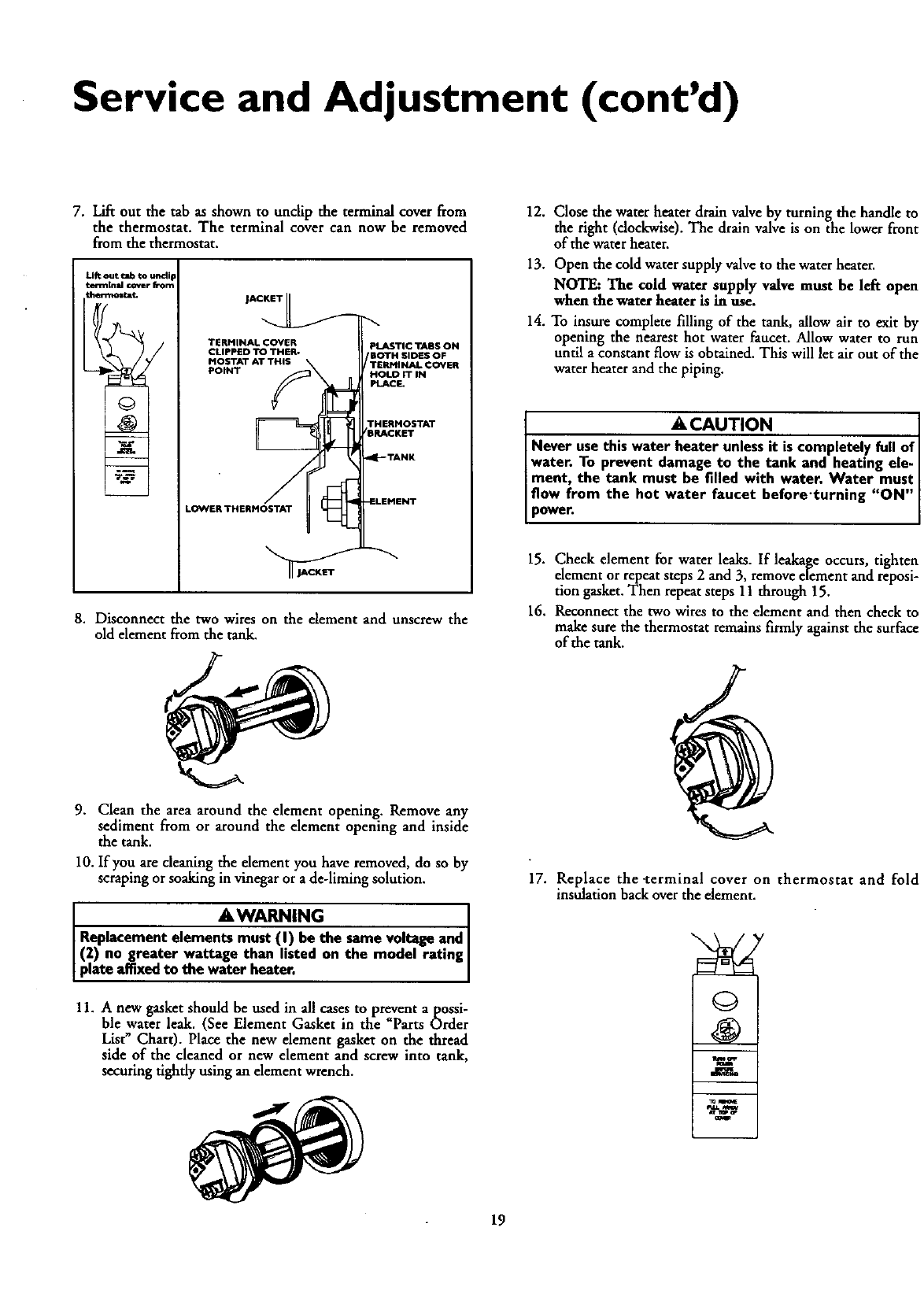 Forsafeoperationofthe water heater,the reliefvalvemust nut