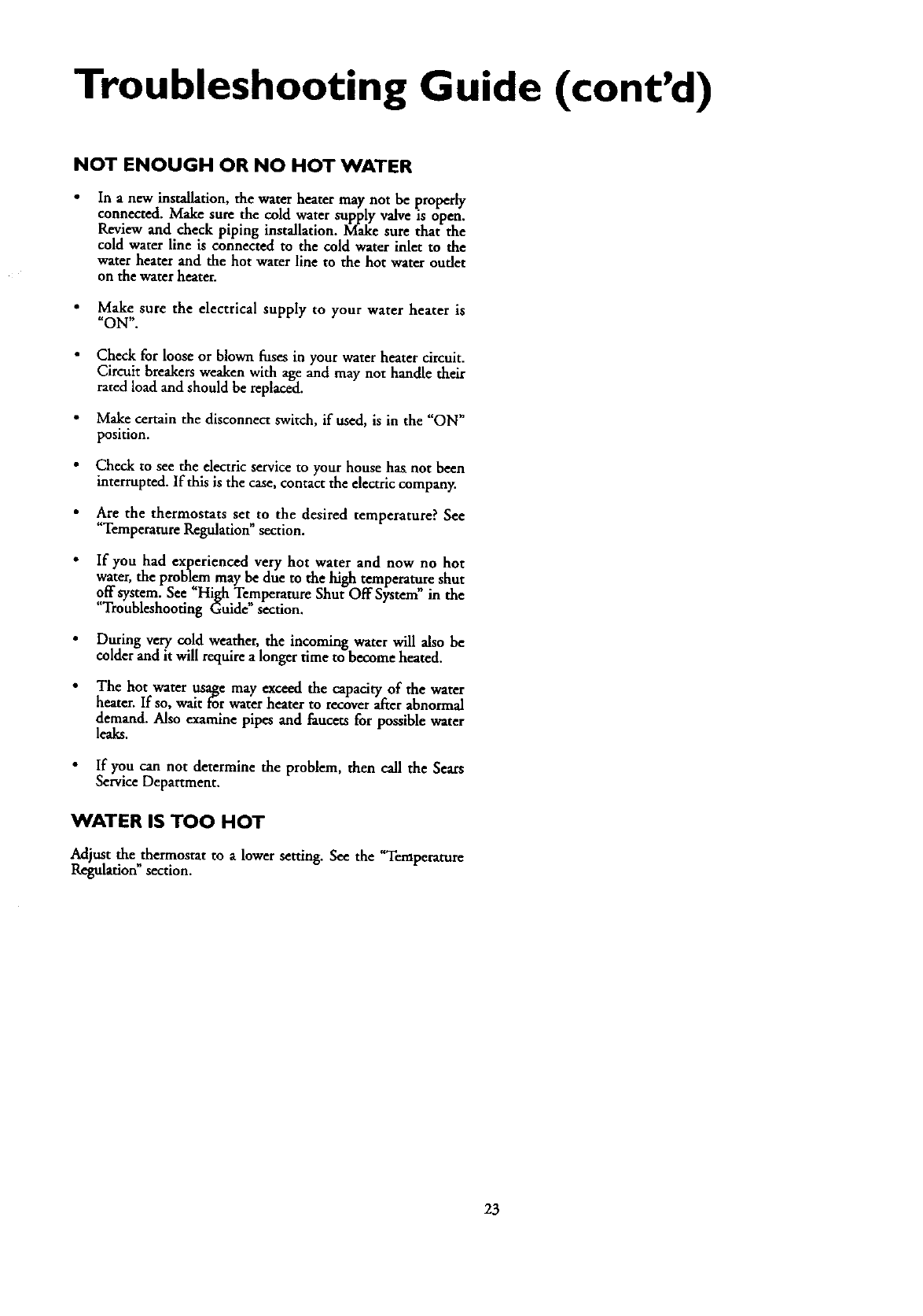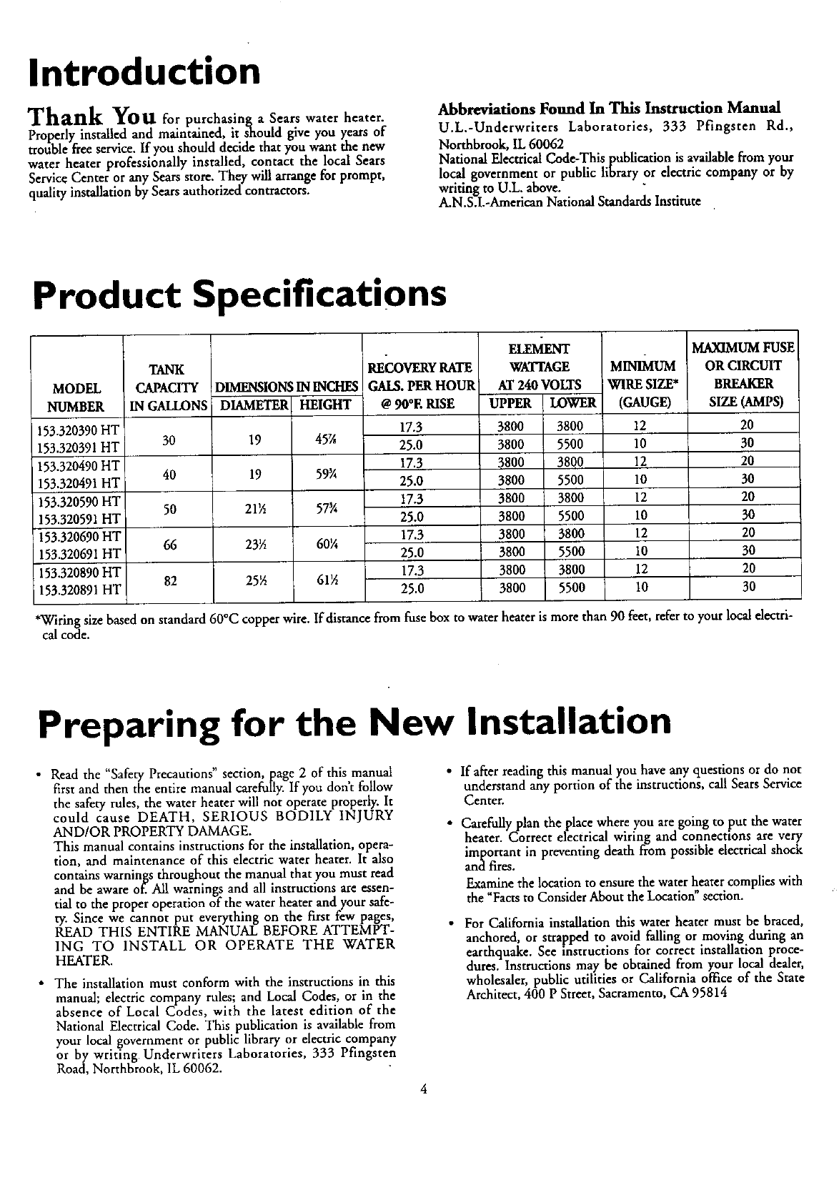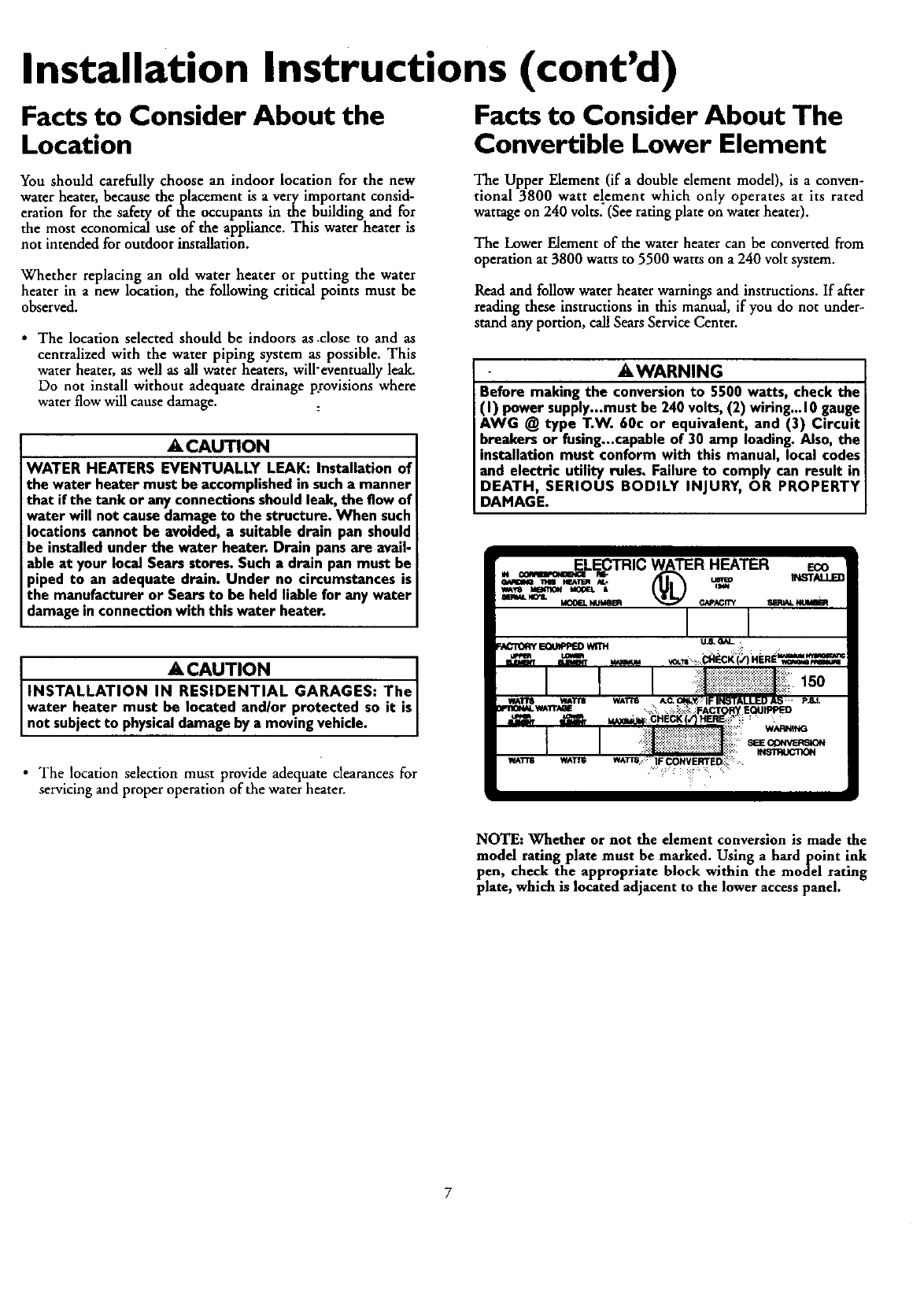 heater professionallyinstalled by Seatscontact your SearsSalesperson.