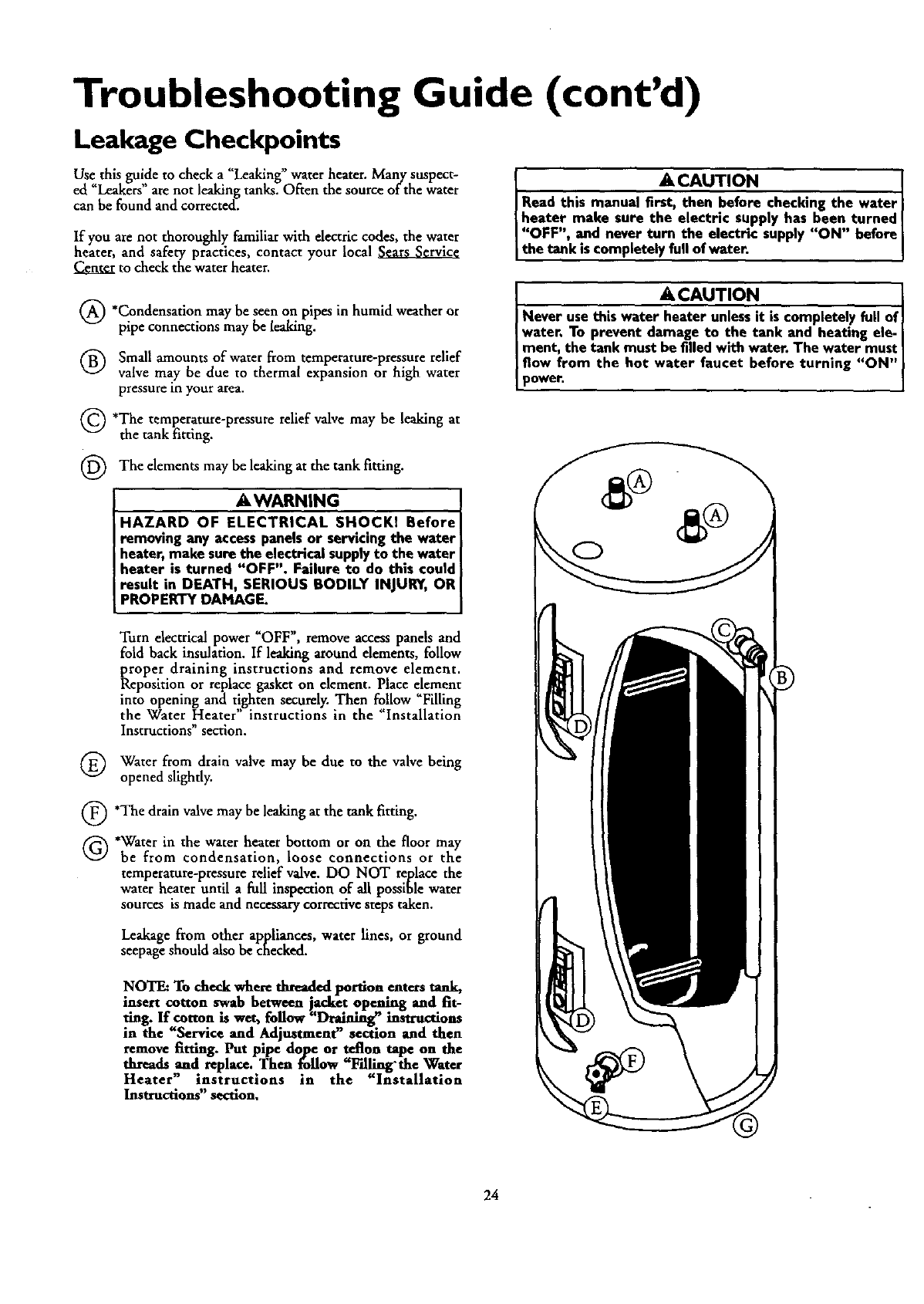 Through ten (10) yearsfromthe date of purchase,ifa leakoccursin the tank, Searswillfurnish, freeof charge,anewcurrent model water