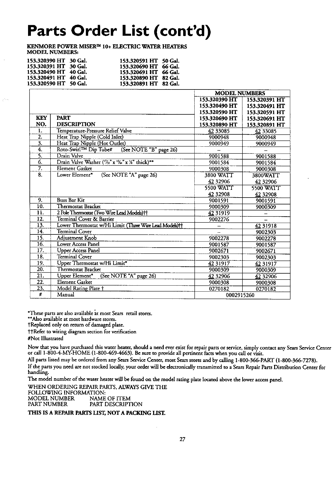 153320490HT 153320490HT KENMORE POWER MISER 12+ ELECTRIC WATER HEATER - Manuals and Guides 99010364 View the owners manual for your KENMORE POWER MISER 12+ ELECTRIC WATER HEATER #153320490HT. Home:Plumbing Parts:Kenmore Parts:Kenmore POWER MISER 12+ ELECTRIC WATER HEATER Manual