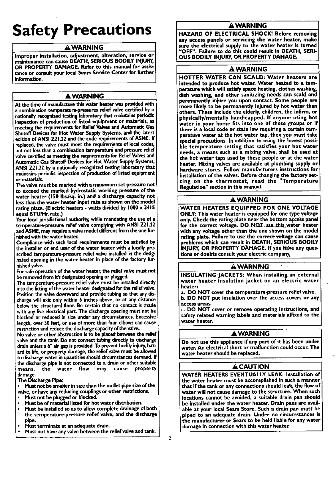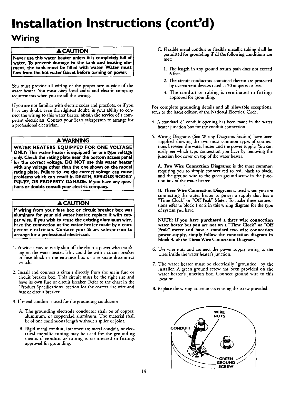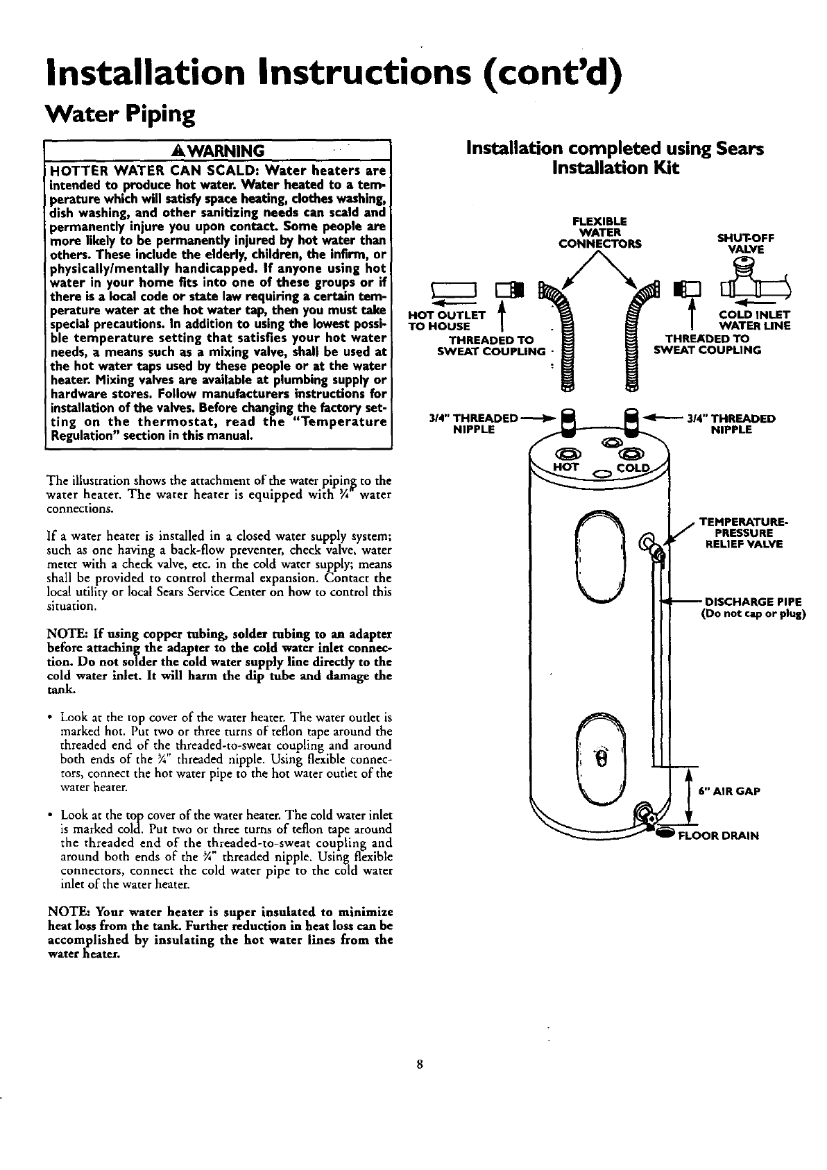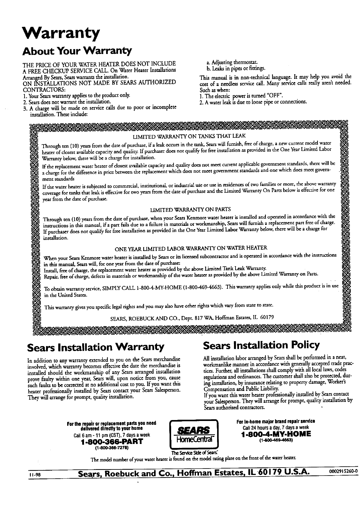 When your SearsKenmorewaterheateris installedby Searsor itslicensedsubcontractorandisoperatedin accordancewith the instructions