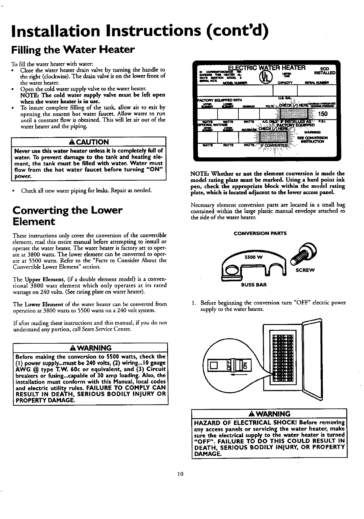 KENMORE Water heater, Electric Manual 99010364 KENMORE Water heater, Electric Owner's Manual, KENMORE Water heater, Electric installation guides