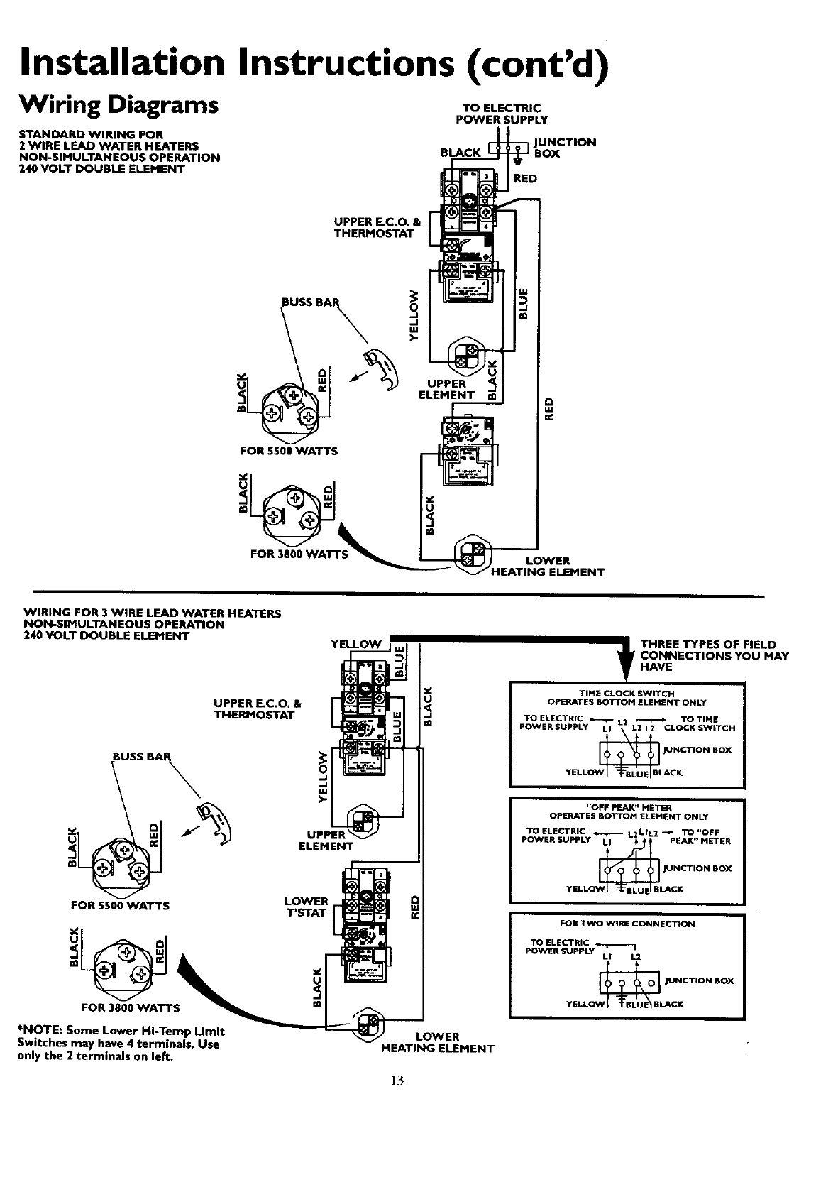 capacities of 20 to 120 Gallons. Input rating of 12 Kw or less at a voltage