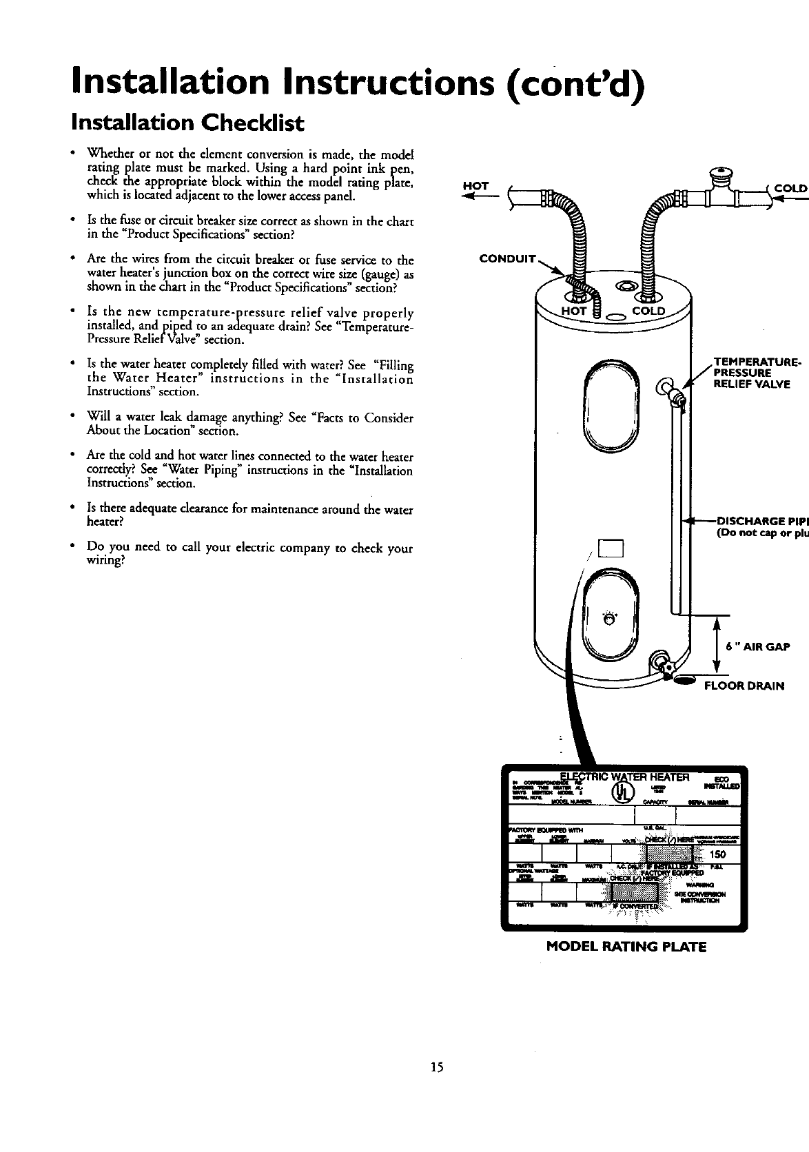 water heater (150 IbsJsq.in.) and a dischargecapacitynut