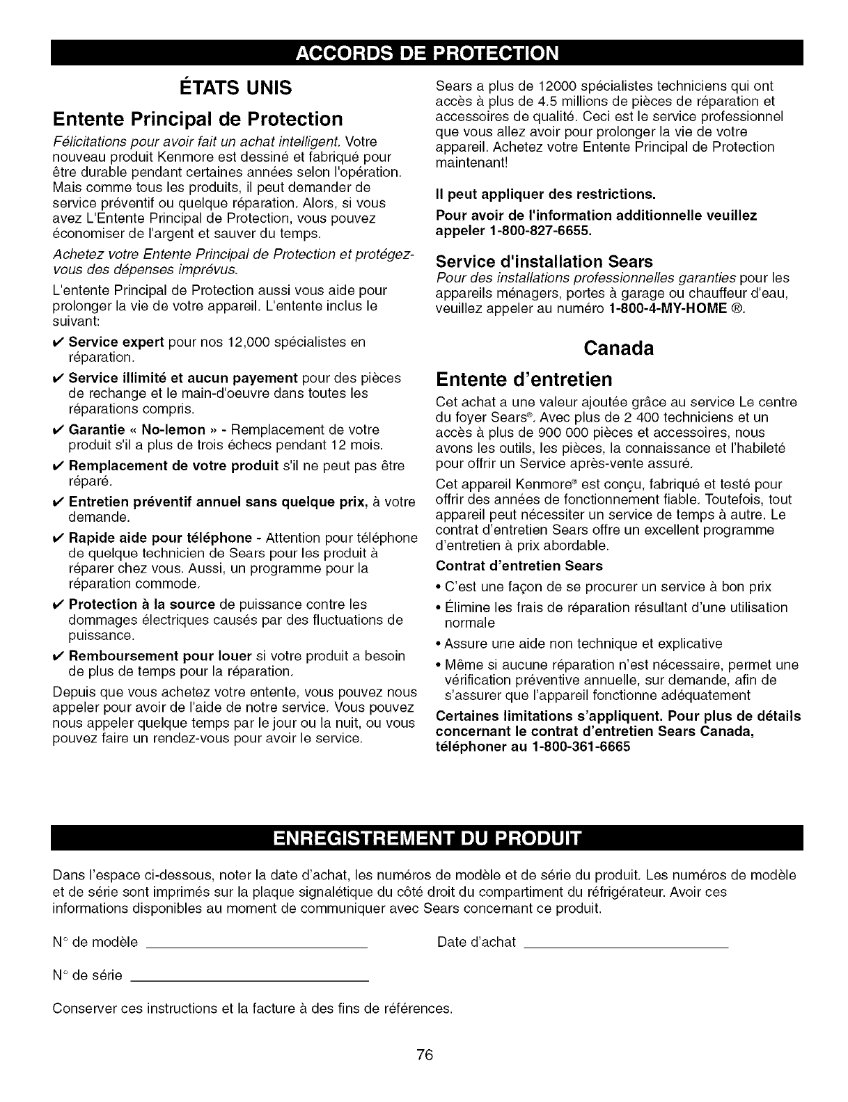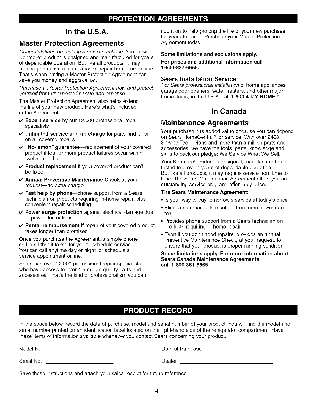 or maintenance agreement (Canada) on a product serviced by Sears: