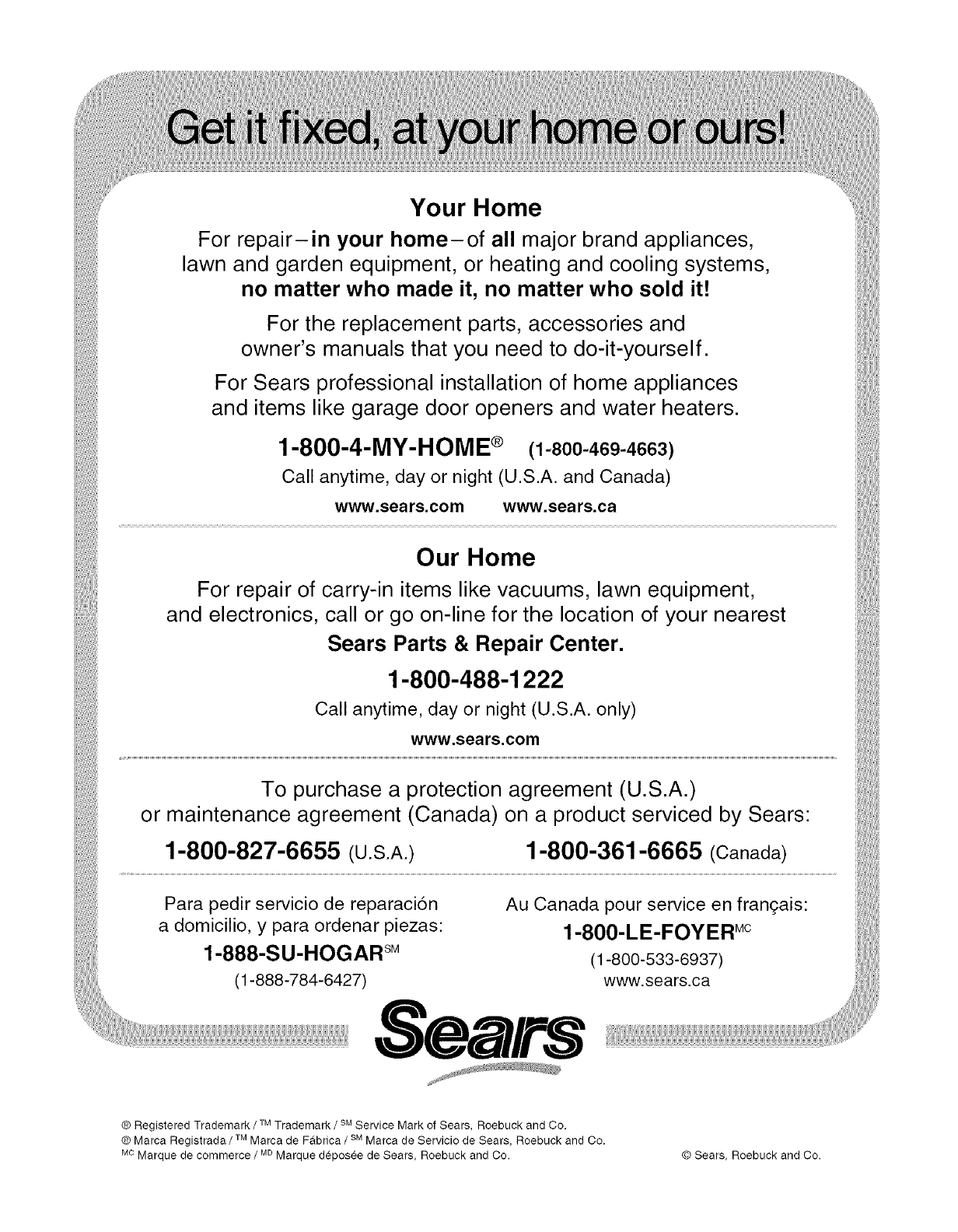 ® Registered Trademark /Trademark /SM Service Mark of Sears, Roebuck and Co.
