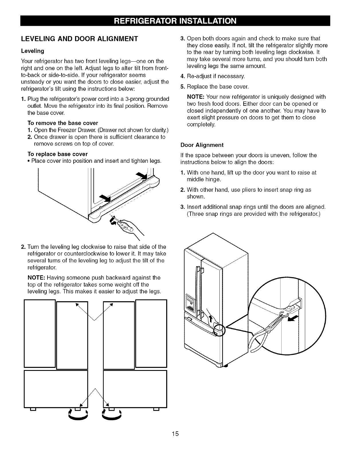 KENMORE ELITE Bottom Mount Refrigerator Manual L0606164 KENMORE ELITE Bottom Mount Refrigerator Owner's Manual, KENMORE ELITE Bottom Mount Refrigerator installation guides