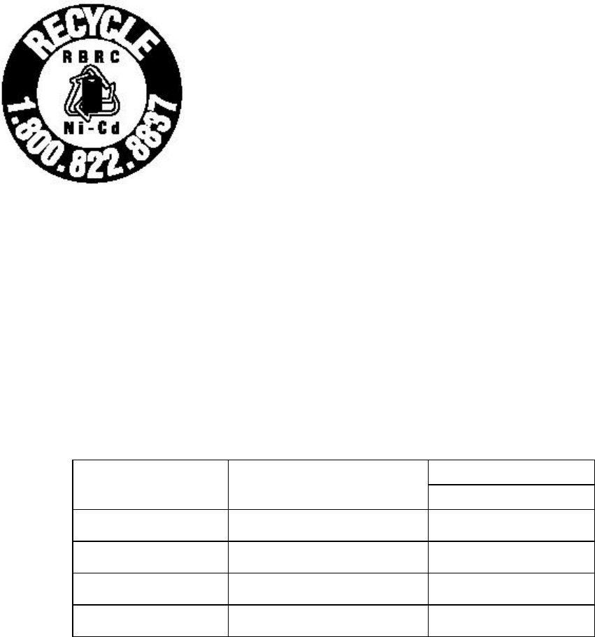 For information on Ni-Cd battery recycling in your area, call (toll free)