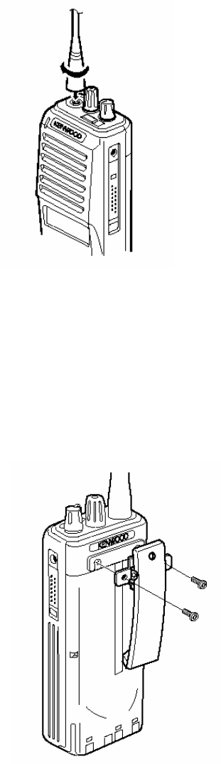 Use only KENWOOD authorized accessories (antennas, battery packs, belt clips, Speaker/ Mics or