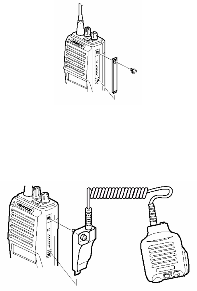If you are not using an optional KMC-25 speaker/ microphone, install the cover over the univeral connector using the