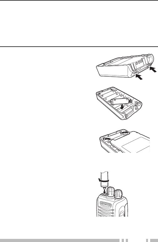 Use only Kenwood authorized accessories (antennas, battery packs, belt clips, Speaker/ Mics or