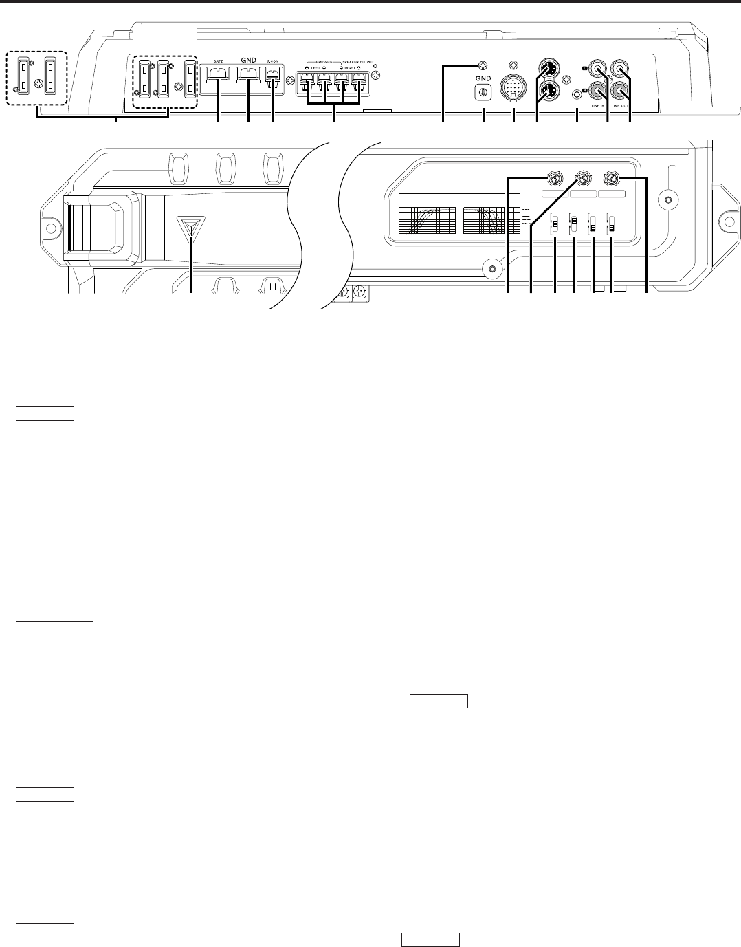 • For the power cord and ground, use a vehicle type (fireproof) power wring