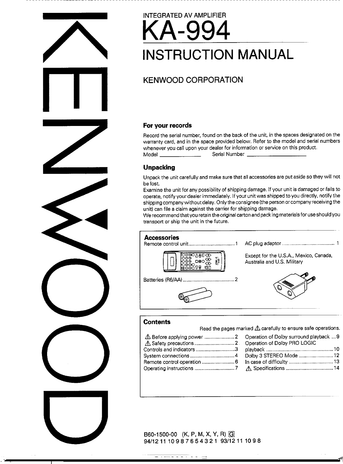 : Kenwood Kenwood-Ka-994-Owner-S-Manual kenwood-ka-994-owner-s-manual kenwood pdf