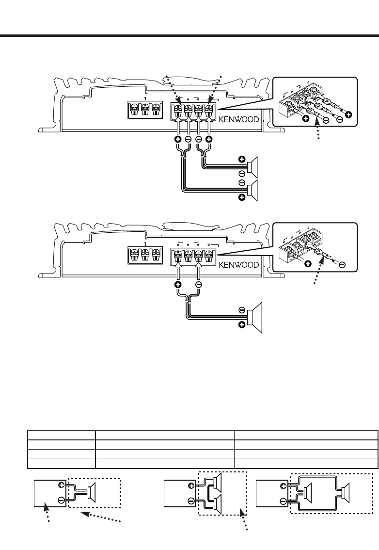 • If you wish to bridge-connect a speaker, the speaker impedance must be no less than 4 ohms.