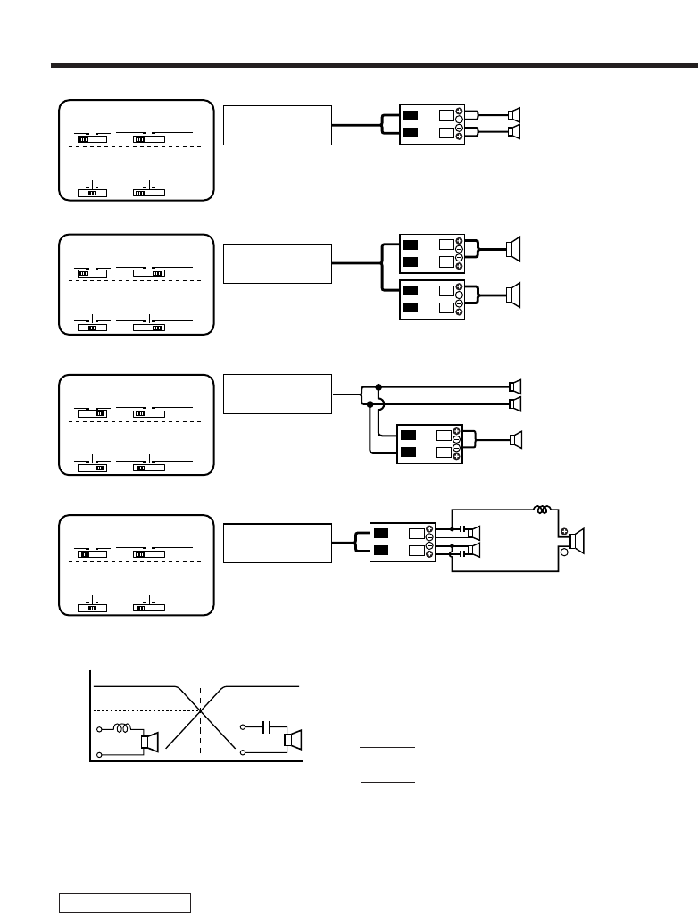 • Be sure to connect capacitors to speakers to which high frequencies will be passed. Failure to