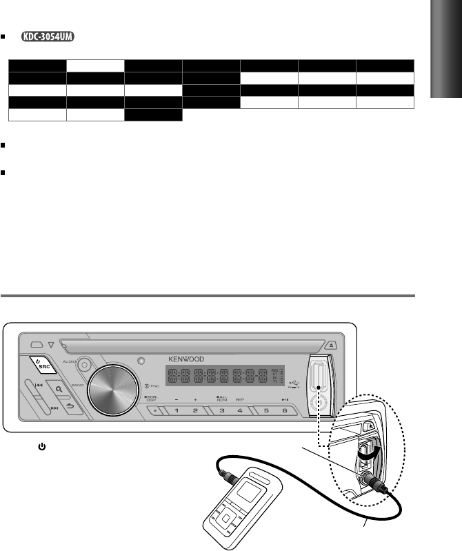 iPod/iPhone, see: www.kenwood.com/cs/ce/ipod