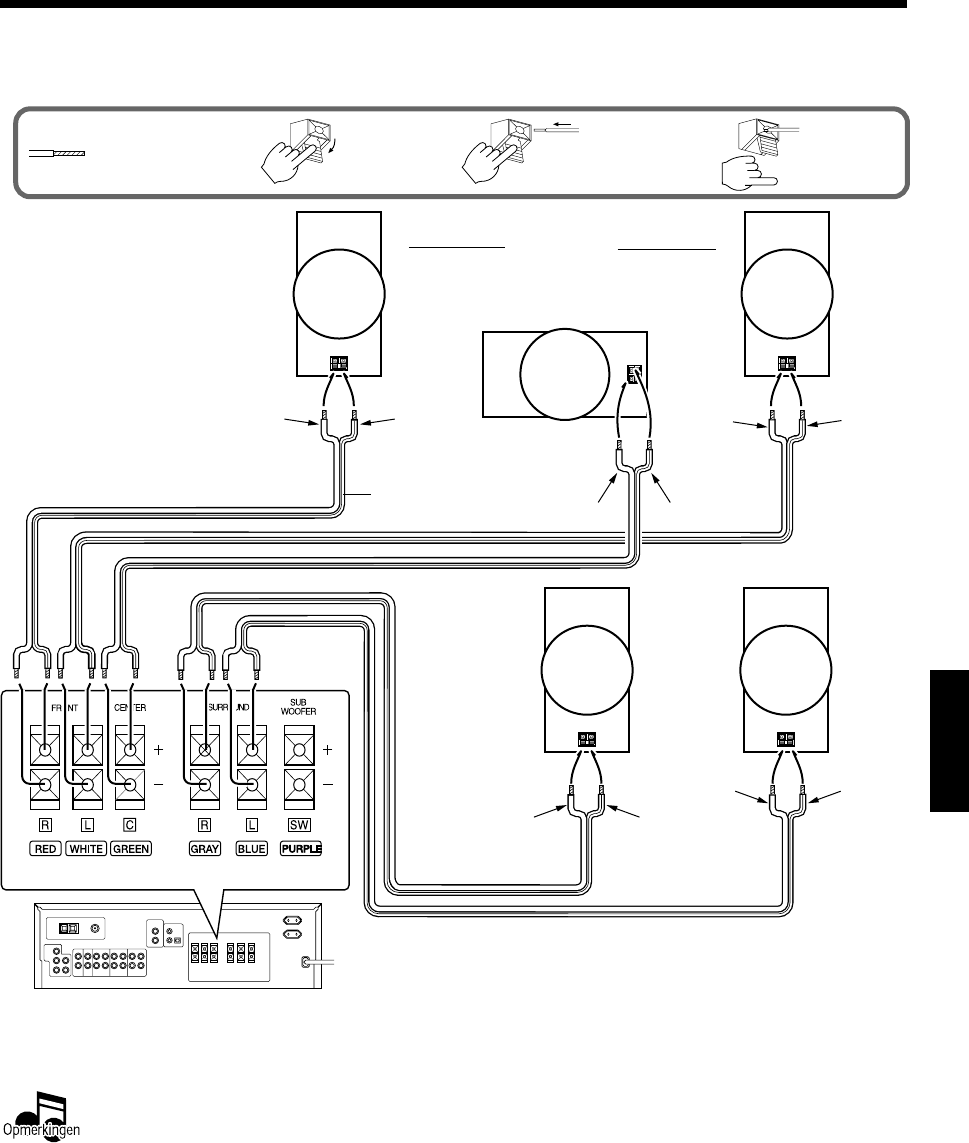 •No cortocircuite nunca los cables + y – de los altavoces.