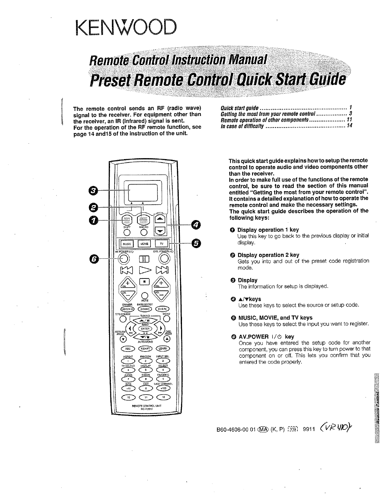 Kenwood Preset Remote Control Users Manual