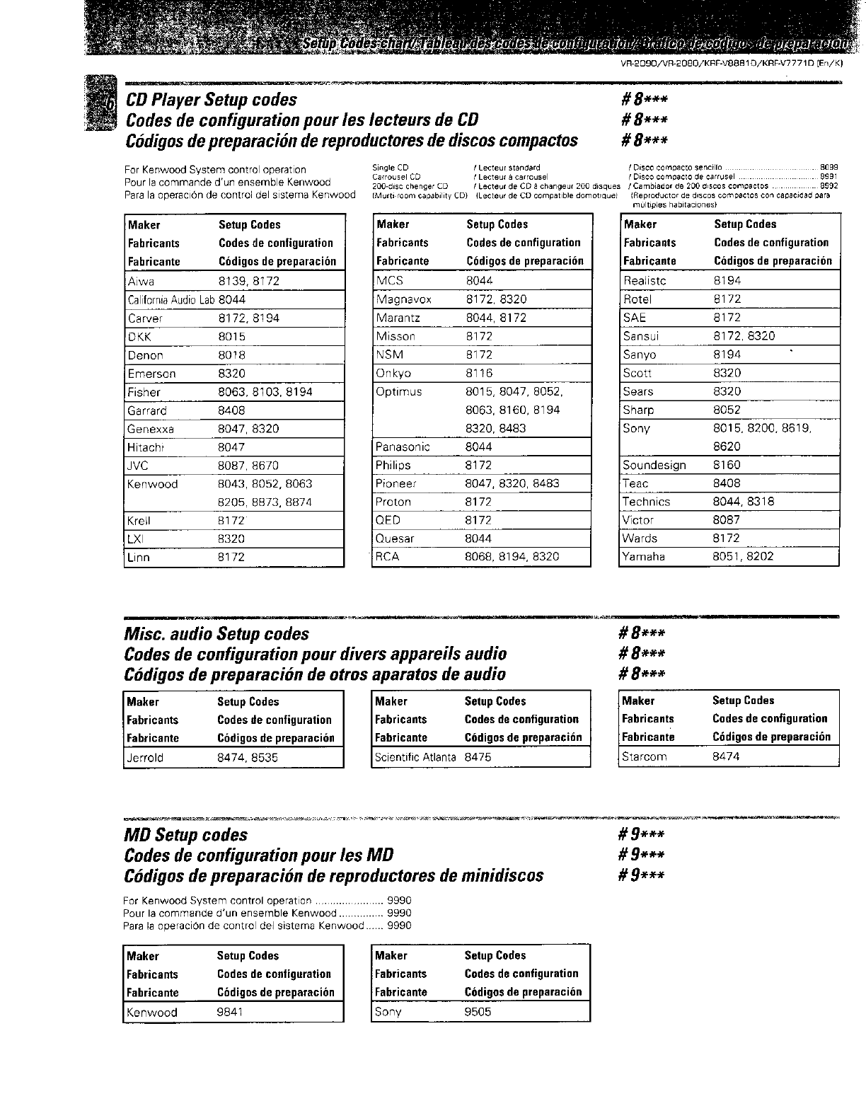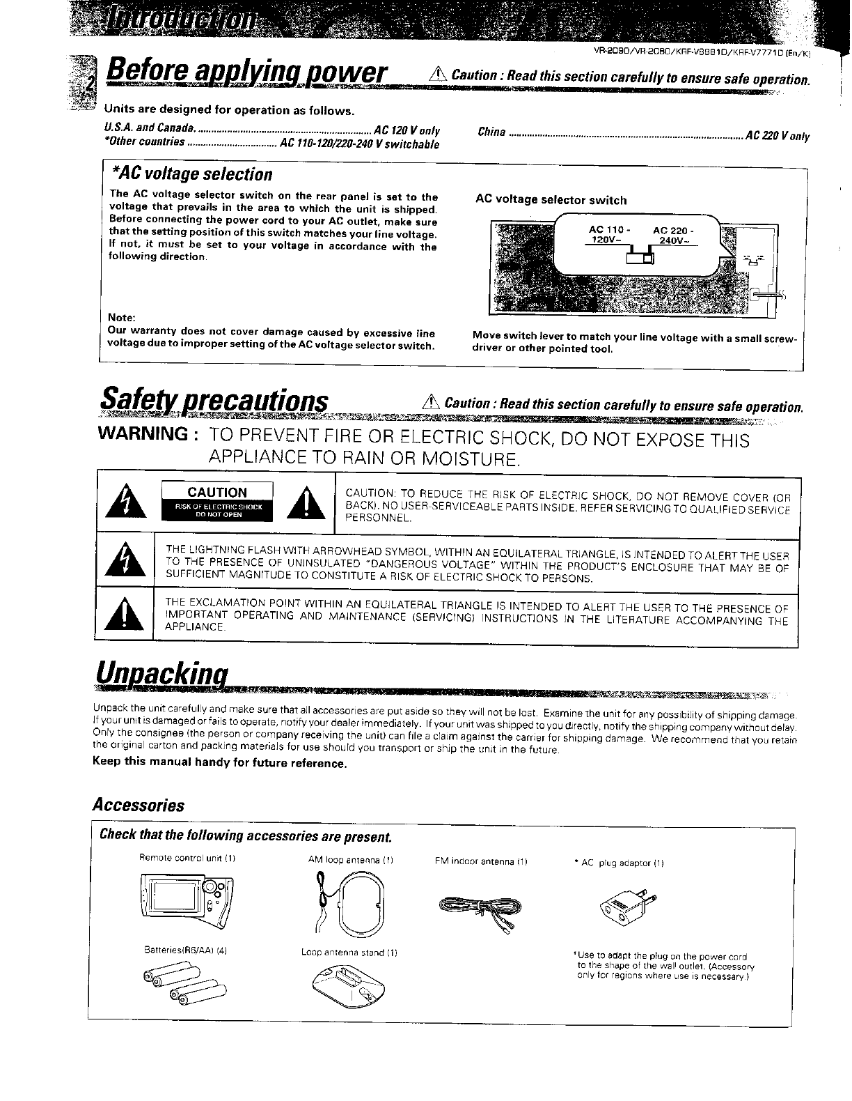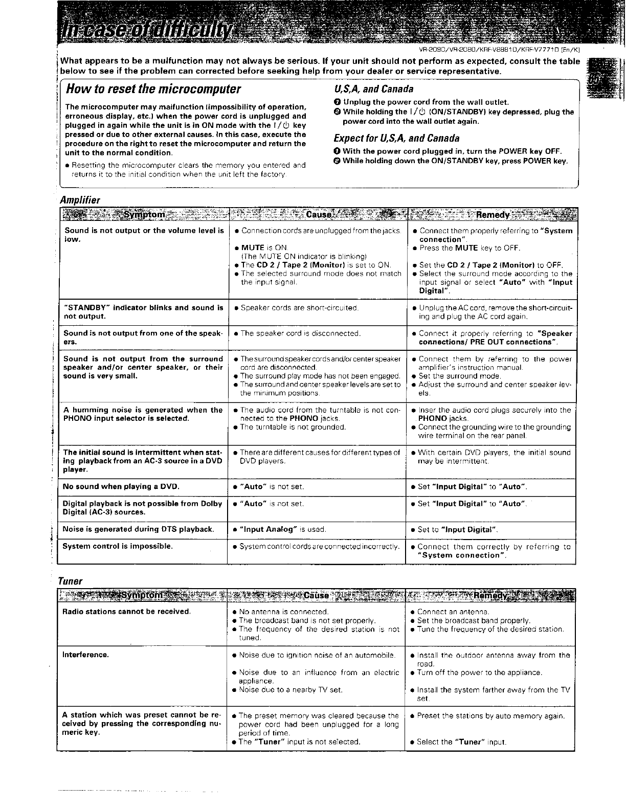 Kenwood Vr 2080 Owner S Manual