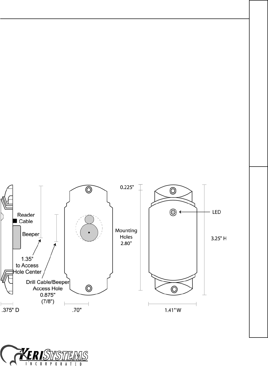 - 7/8") accommodates the beeper and the reader cable. Two small holes are for mounting the reader