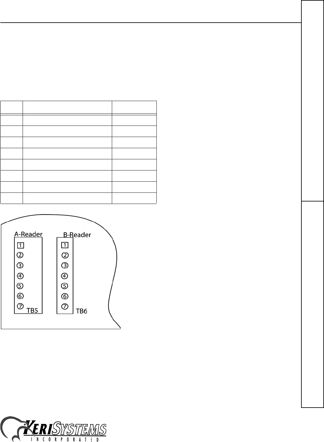 made to that pin). The "B" reader connects to TB6, pins 1 through 6 (TB6 has a seventh pin, but no