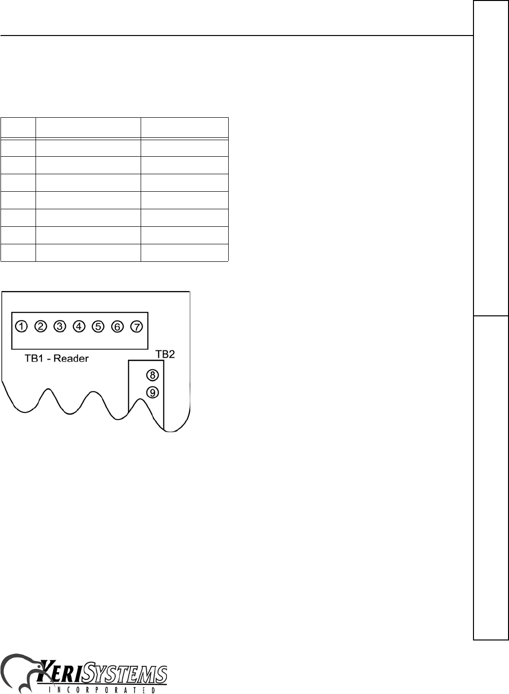 The reader connects to TB1, pins 1 through 6.