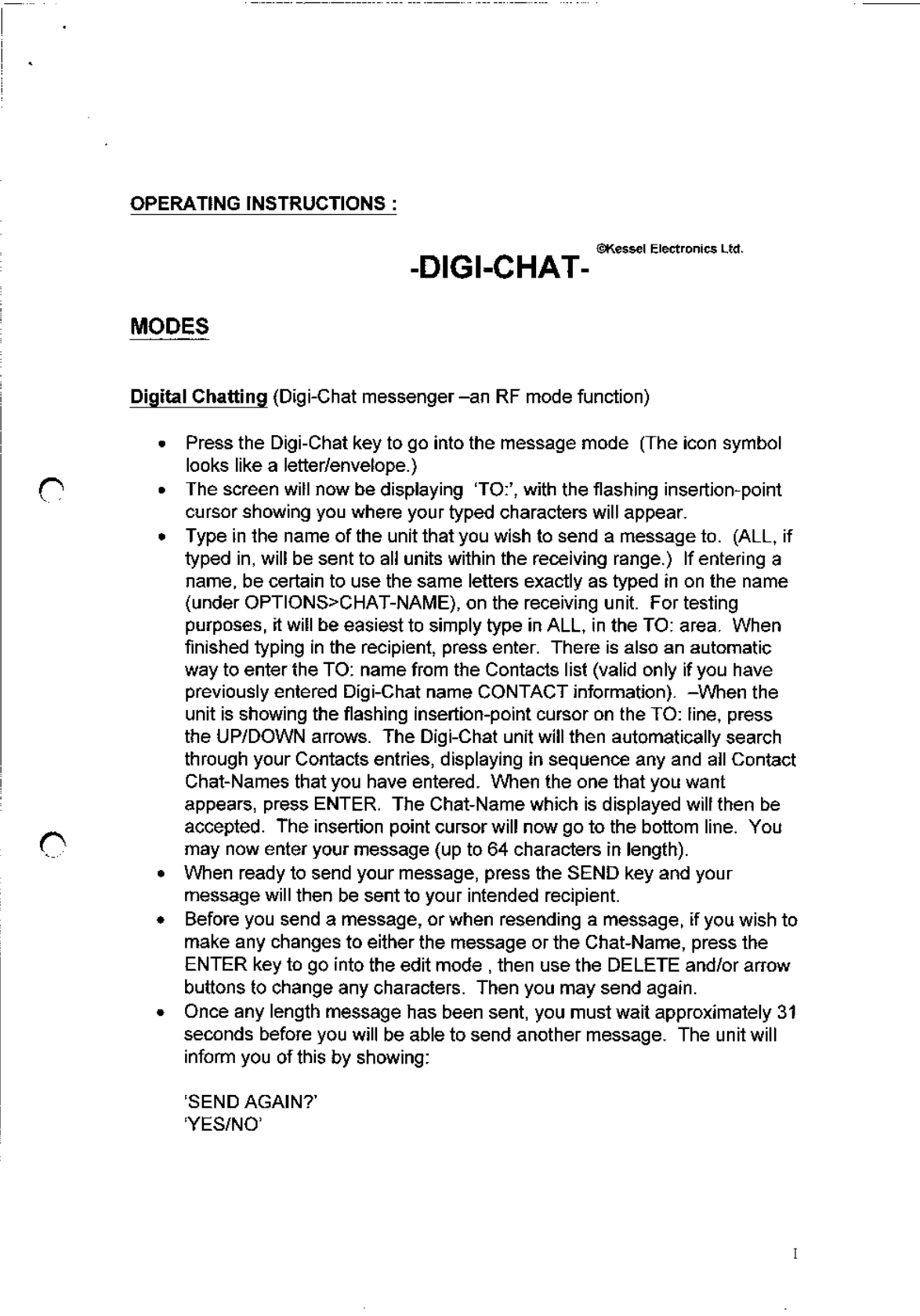Kessel Electronics 10310 Digi Chat User Manual