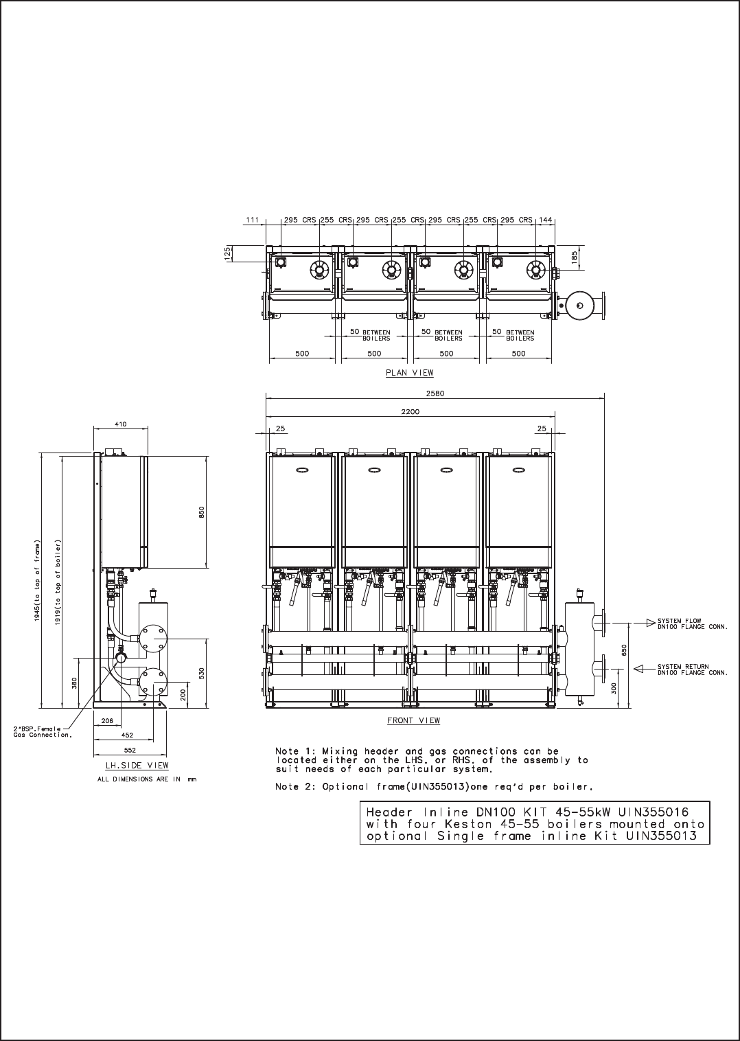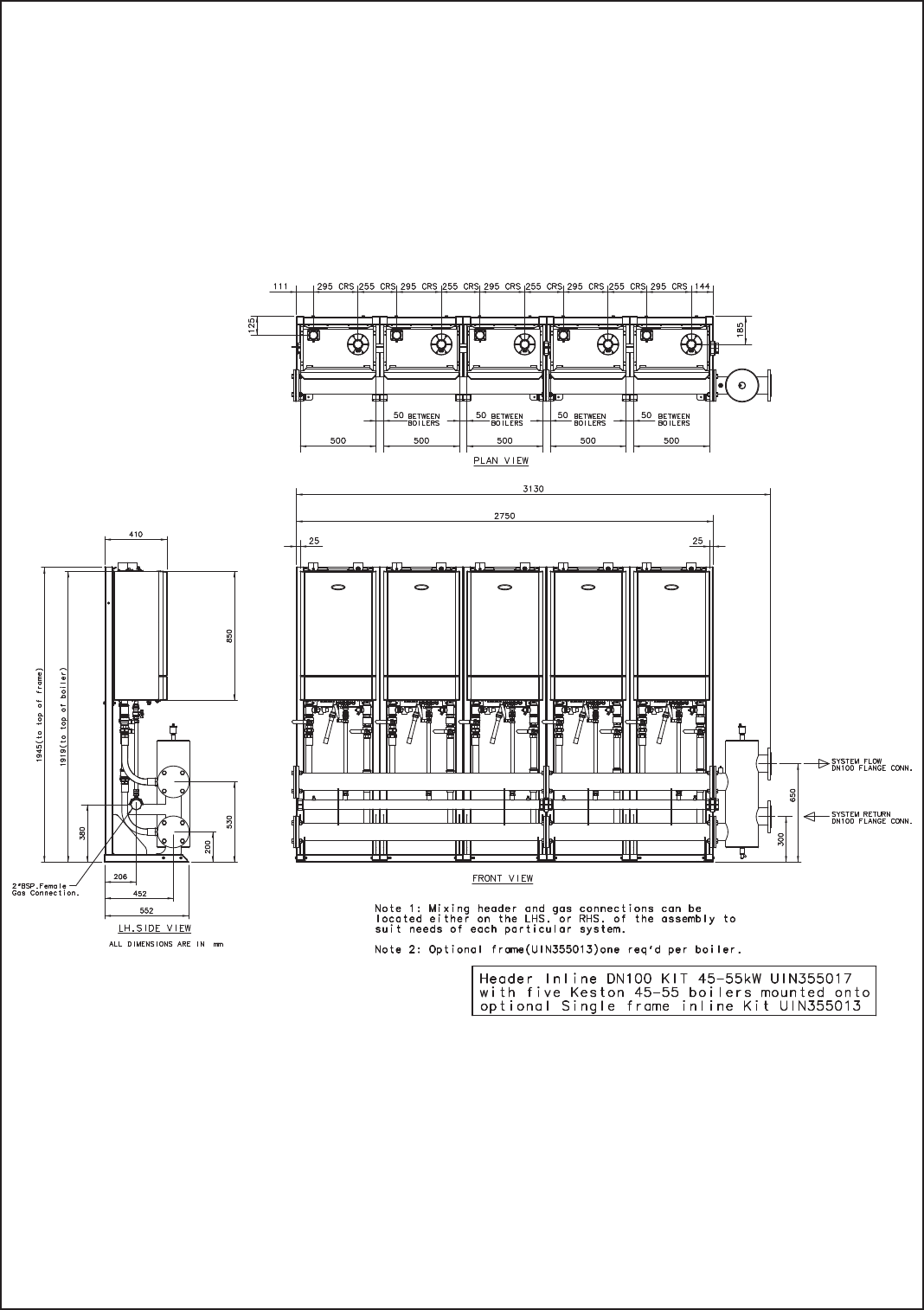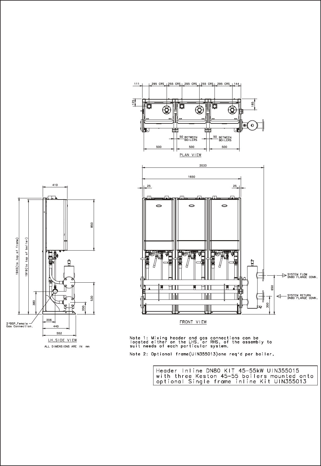 Header and Frame kits are available in line (from 2 to 6 boilers long).