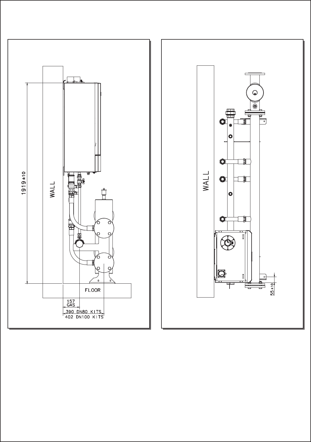 4.2.1 INSTALLATION DRAWING WITH 2 - 45 or 55 BOILERS (SIDE BY SIDE)