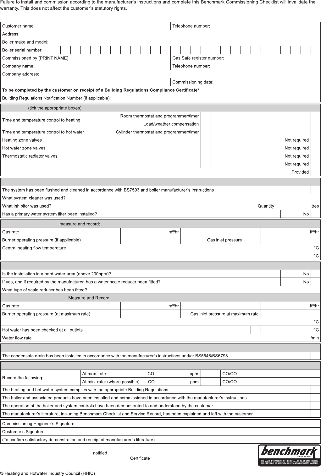 New updated Commissioning Checklist & Service Record Sheets