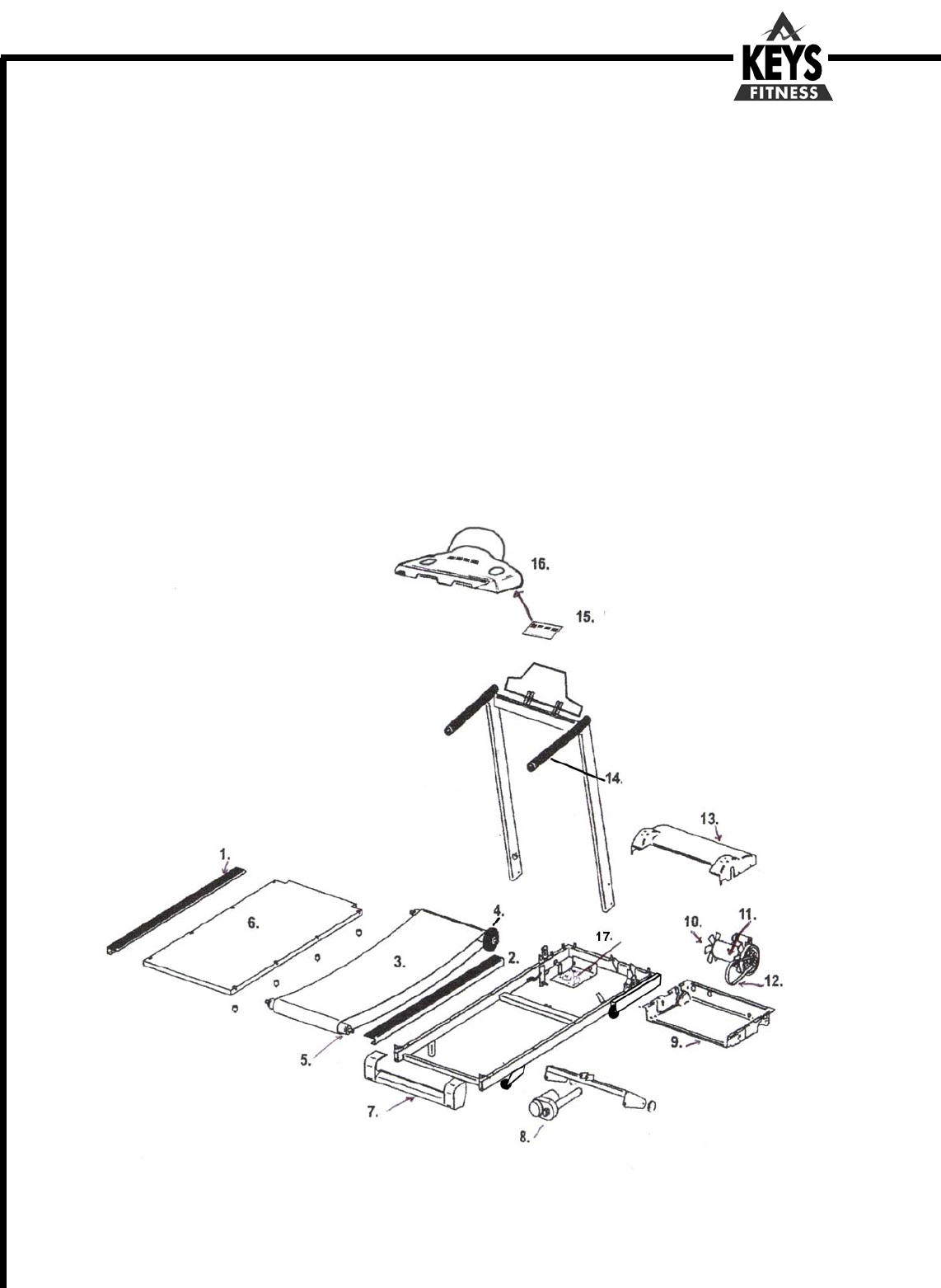 authorized dealer/technician unless otherwise authorized by Keys Fitness in writing (if anyone other than a Keys Fitness authorized dealer/technician assembles a Keys Fitness treadmill the warranty will be void unless
