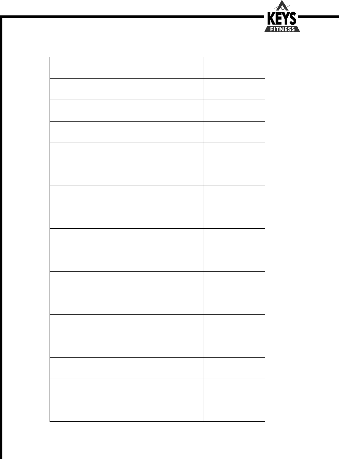 To obtain warranty service, you must contact a Keys authorized service technician or Keys Fitness at our phone numbers located in this manual. Any parts determined to be defective must be returned to