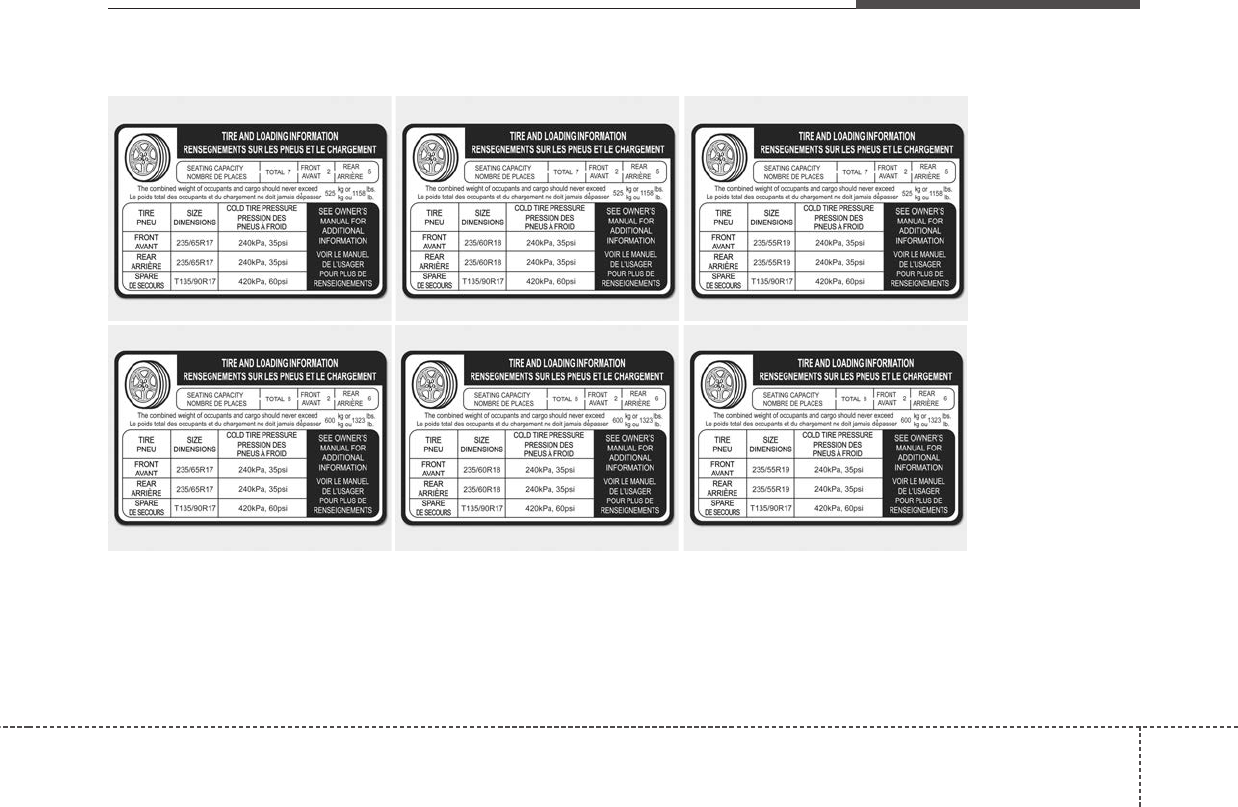 Tire and loading information label. . . . . . . . . . . . . . 5-89