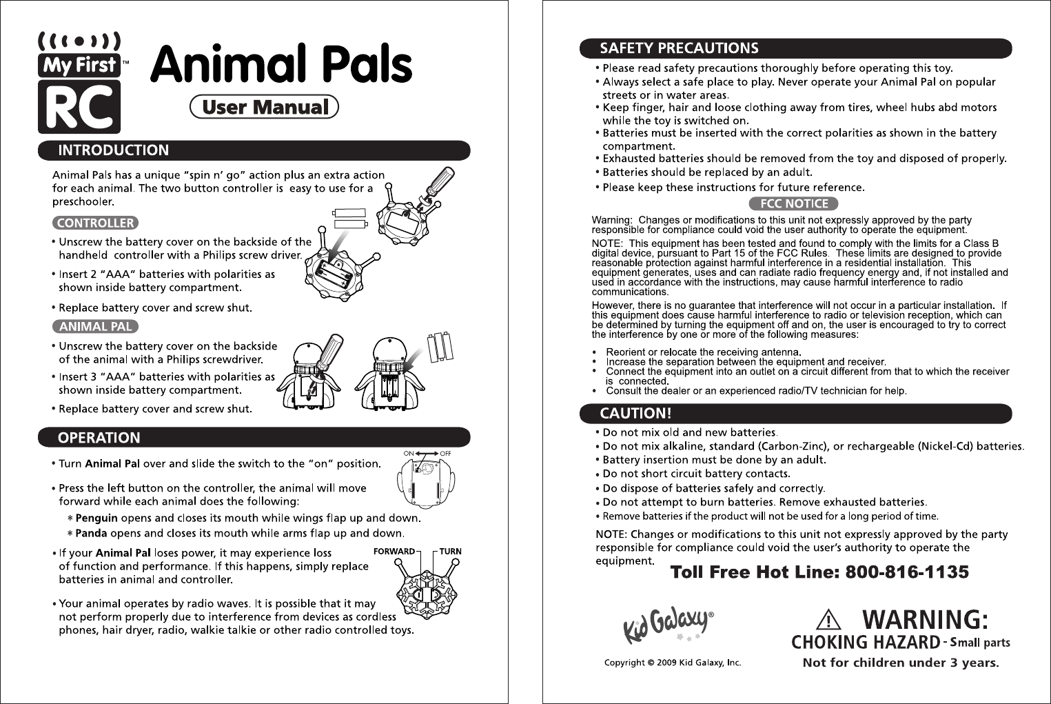 Kid Galaxy BEAR9T RC POLAR BEAR User Manual Animal Pals Outline CS2