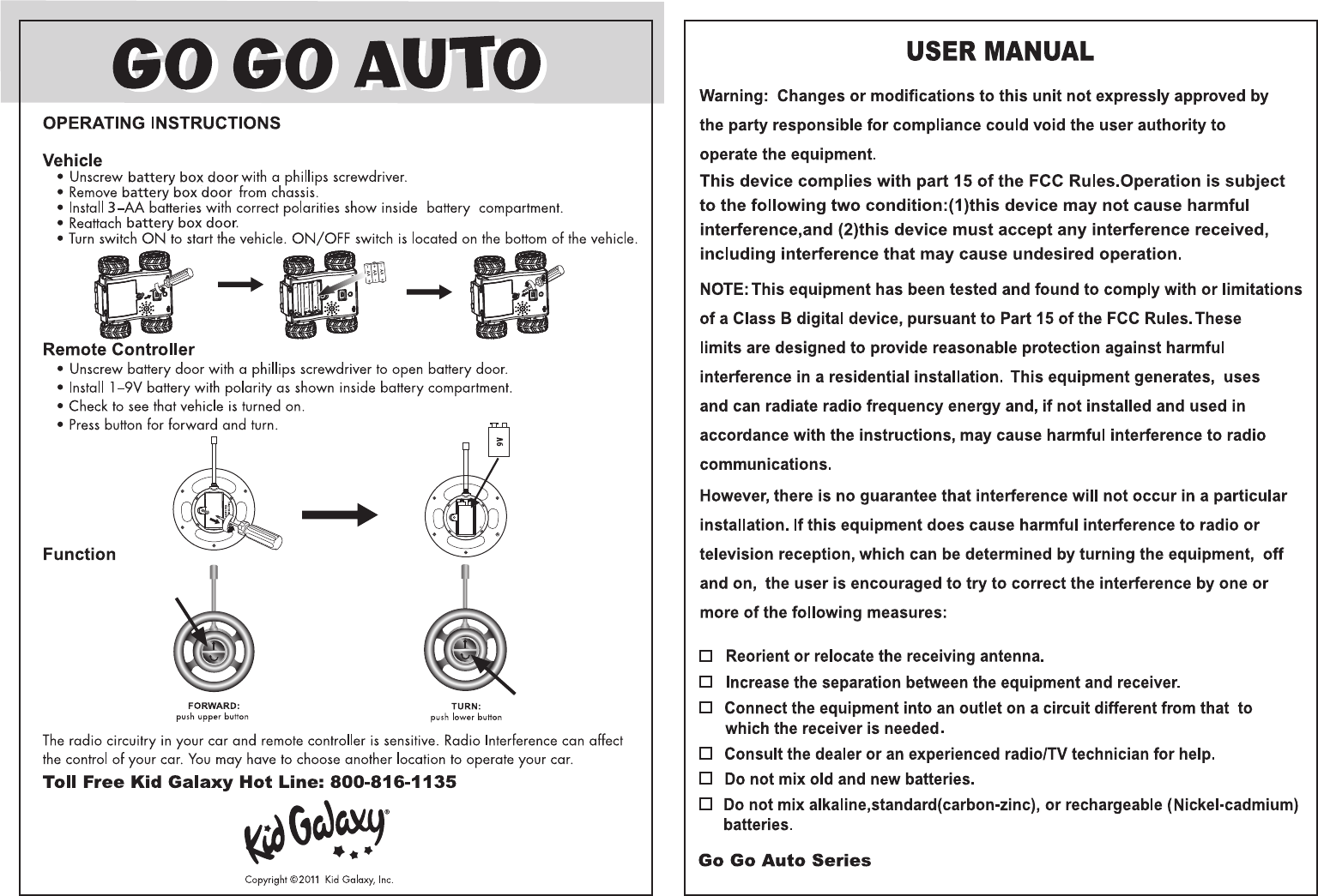Kid Galaxy E003-49R GOGO AUTO-F150 User Manual Go Go Auto series 7