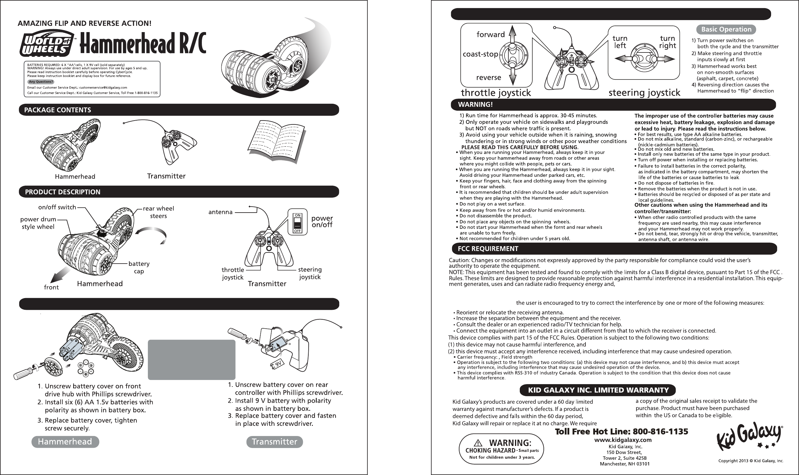 Kid Galaxy Inc. HAMMERHEAD R/C Hammerhead Instructions Outlines 4