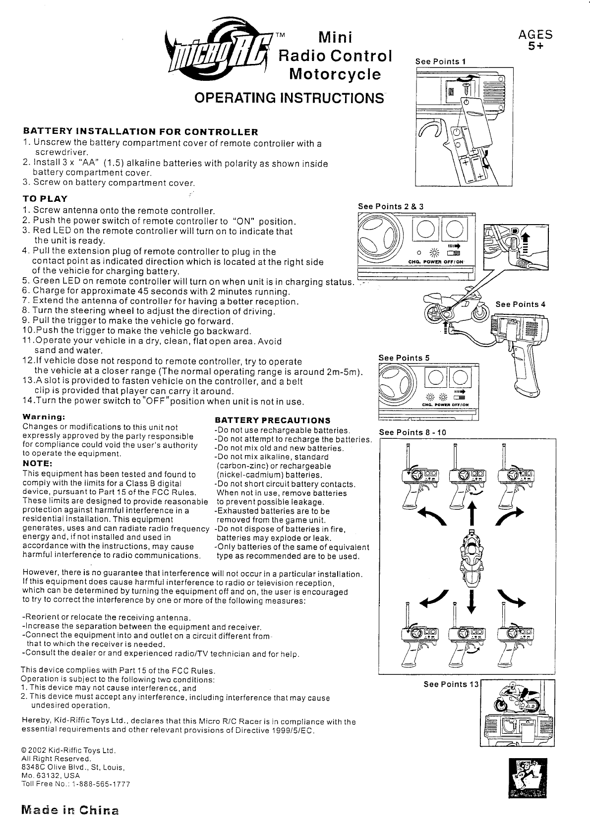 Kid Riffic Toys 1807 Mini RC Motorcycle User Manual