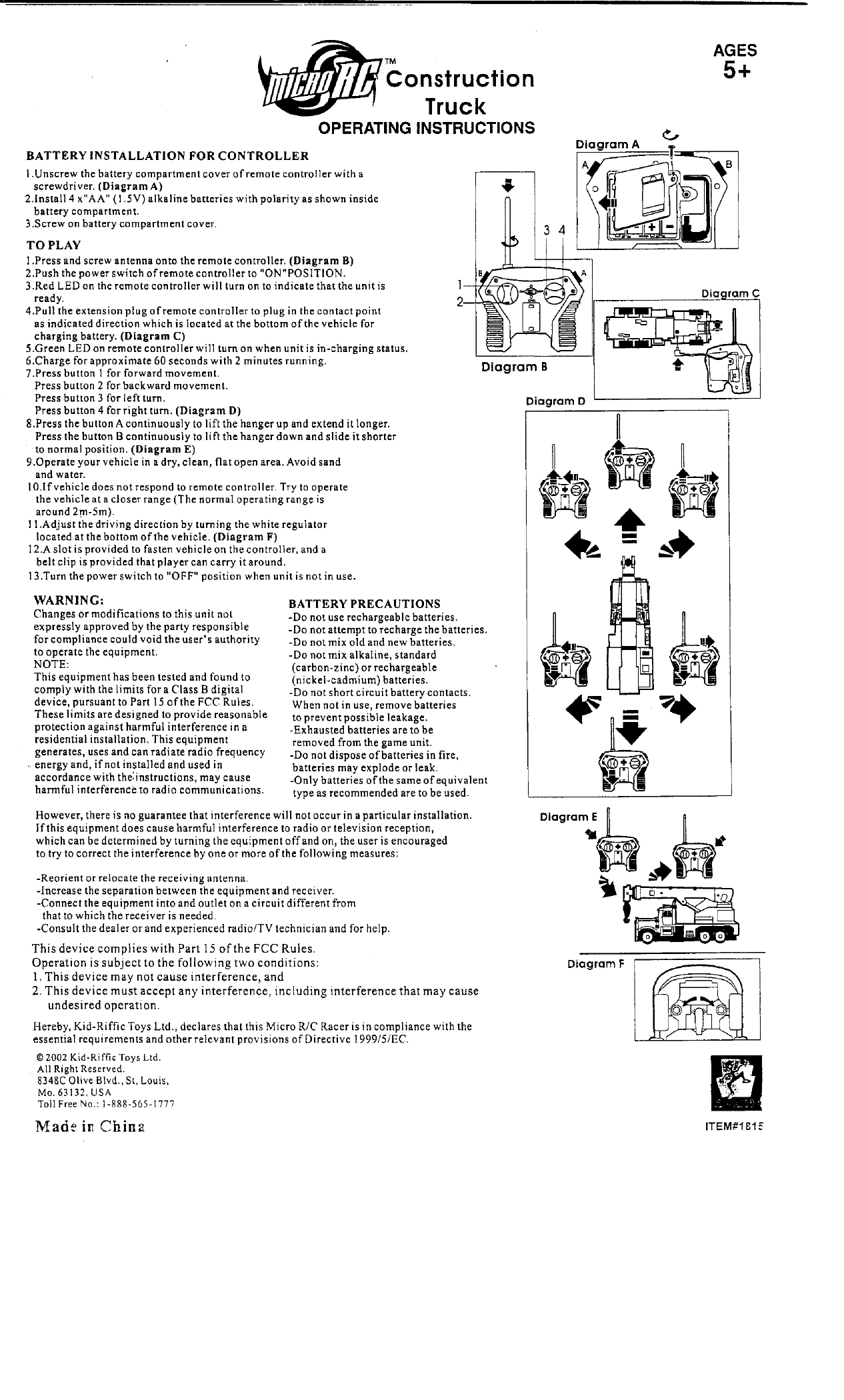 Kid Riffic Toys 1815-R49 RC Car User Manual